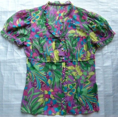 丈約54cm、肩幅約34cm、袖丈約21cm、 バスト約44cm、ウエスト約37cm、裾幅約48cmです。