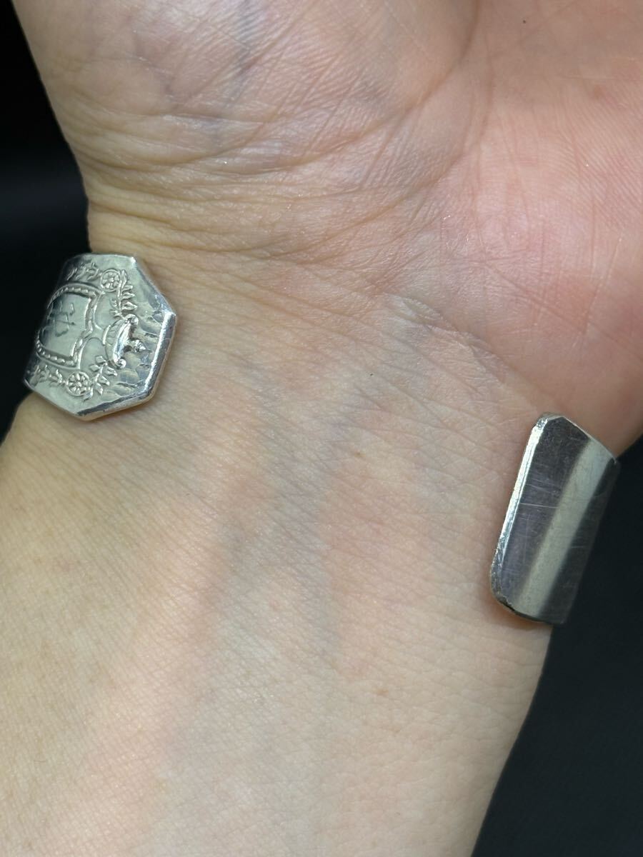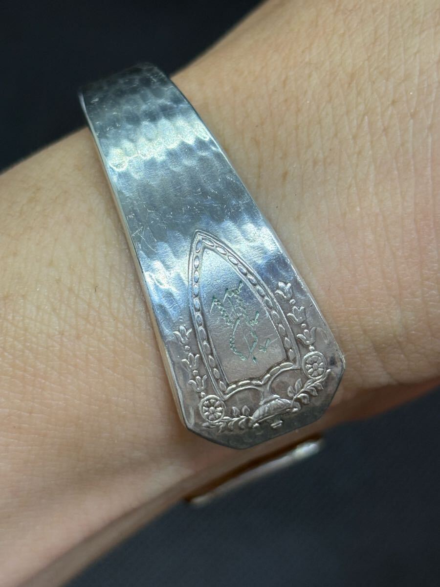 元々、50年代頃のアンティーク、バターナイフで作られたバングルで現行物には出せない独特の雰囲気、オーラがある雰囲気抜群の1品!