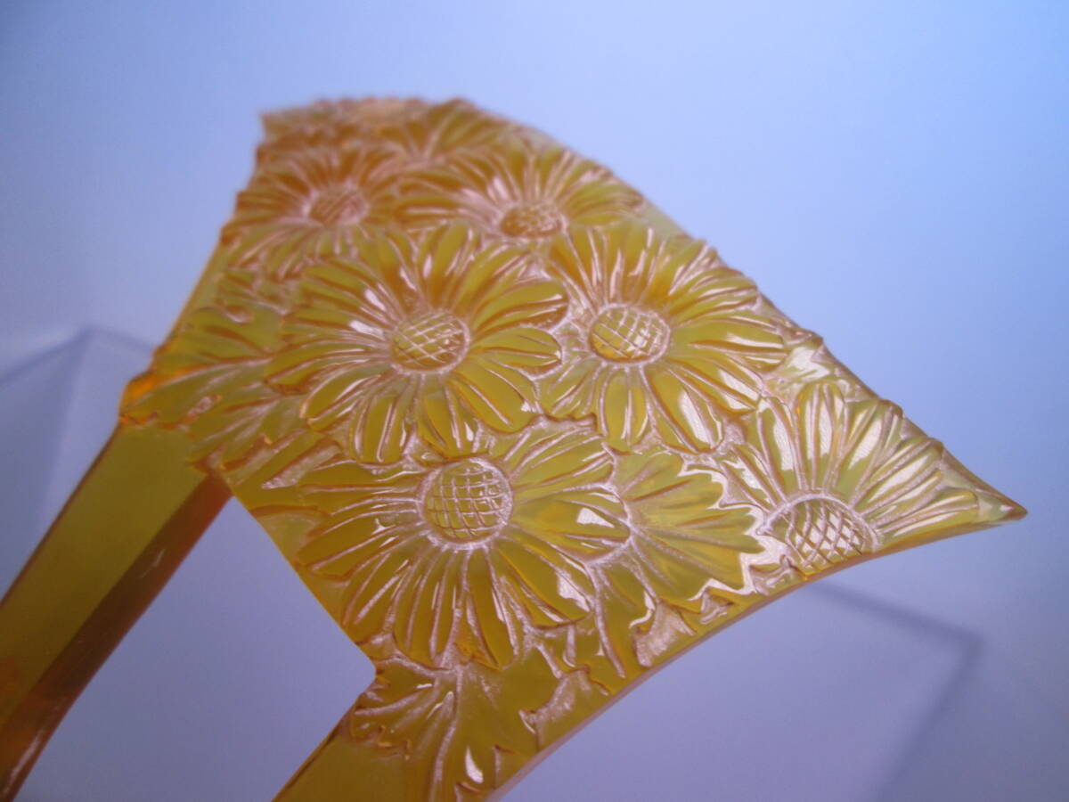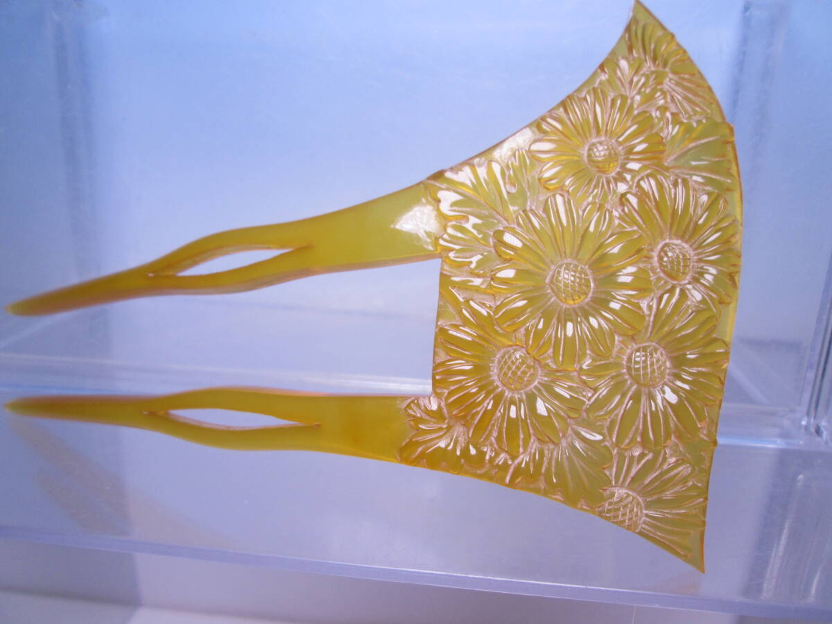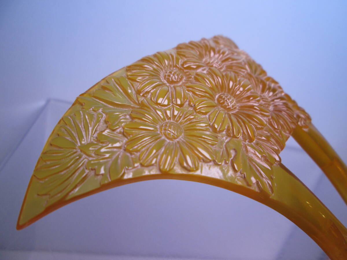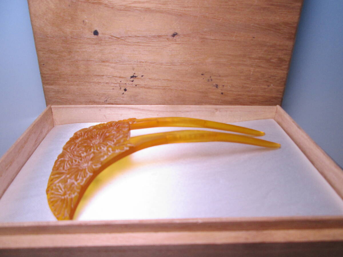 【江月】本鼈甲 白甲 大振りな菊花彫のかんざし 13,5cm 木箱付