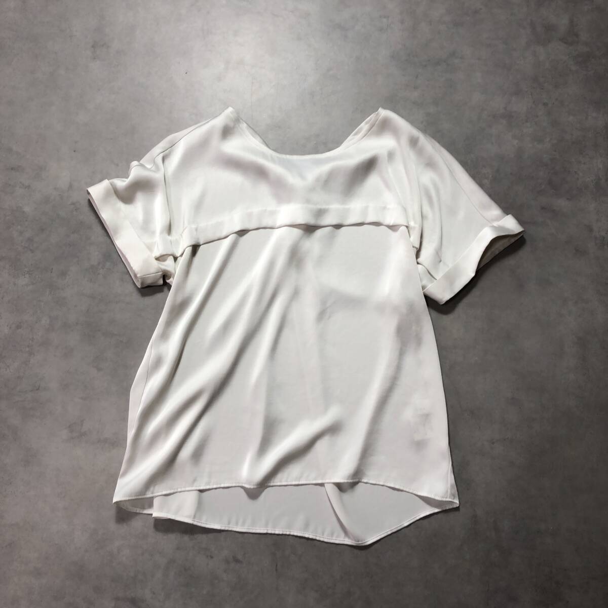 商品名 :WQ525●QTUME:半袖とろみブラウス●38● 白 シャーリング シャツ 日本製 ブルーベル クチューム