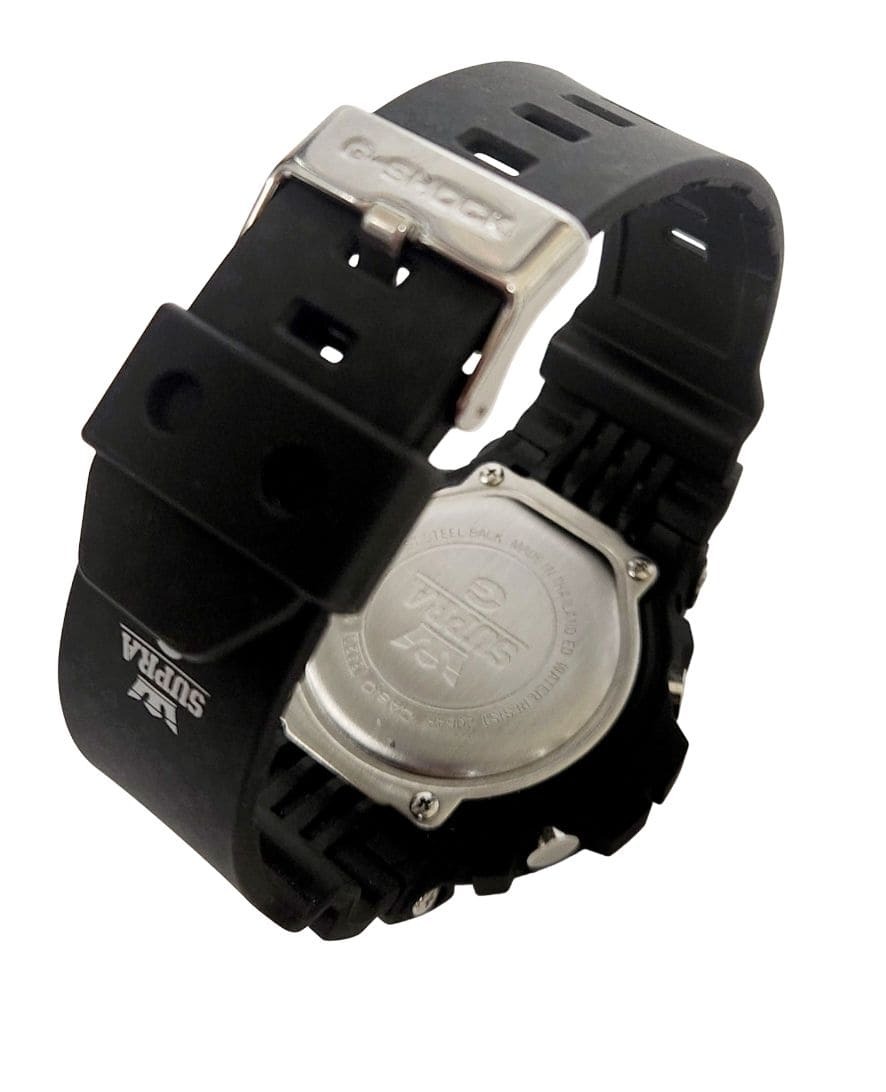 コメント・・・タフネスを追求し進化を続けるG-SHOCKと、スケーターなどストリートカジュアルを好む若者やセレブリティから絶大な人気を誇るブランド「SUPRA(スープラ)」とのコラボレーションモデル第2弾が登場します。世界の若者にカルチャーを発信し続けている両者のスピリットが共鳴し今回のコラボレーションが実現。ベースモデルにはタフネスデザインの象徴GD-X6900を採用。ブラックをベースにケース・バンドの全面にSUPRAのスニーカーに用いられる「Polka dot(ポルカドット)」※柄を採用しました。同系色のドット柄を施し、SUPRAらしくモノトーンでまとめクールなデザインに仕上げました。また、文字板やバンドにSUPRAのブランドロゴをあしらい、裏蓋には両者のブランドロゴを刻印。パッケージにもポルカドット柄を採用し、スペシャルに相応しい仕上げにしました。ユースカルチャーを発信し続ける両ブランドが融合し、ストリートシーンに強烈なインパクトを与えるスペシャルモデルの登場です。
