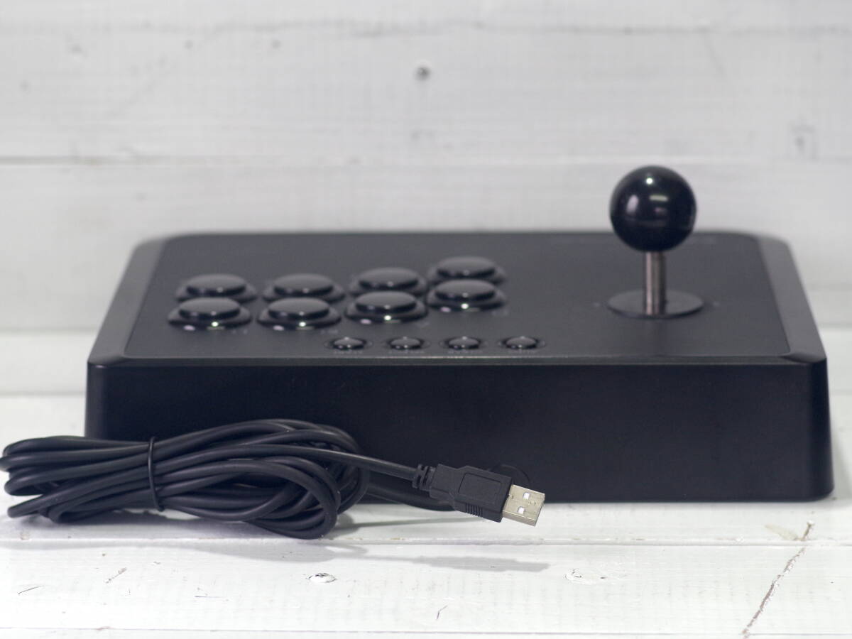 こちらELECOM アーケードスティック C-AS01BKです。ずっしりとした低重心設計で、安定感ある操作を実現する10ボタンUSBアーケードスティックです。格闘ゲームなど、激しいアクションやプレイを必要とするゲームに最適です。8ボタンに連射機能を設定可能です。USB接続なので、PlayStation(R)3に接続するだけですぐに使用可能です。画面から離れて操作ができる3mのロングケーブルを採用しています。。実機がないため動作チェックはありません。現状です。万が一、メンテナンスの必要が発生した場合はお客様自身でお願い致します。