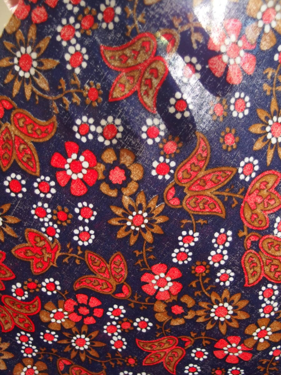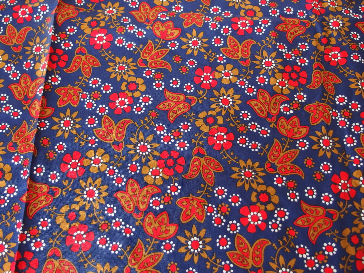 SALE! 新品!スイス製 ヴィンテージ&レトロ ファブリック ハギレ 布地 生地 (紺色に赤い花柄 大人かわいいレトロな花柄プリント)118x130cm