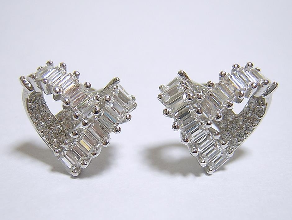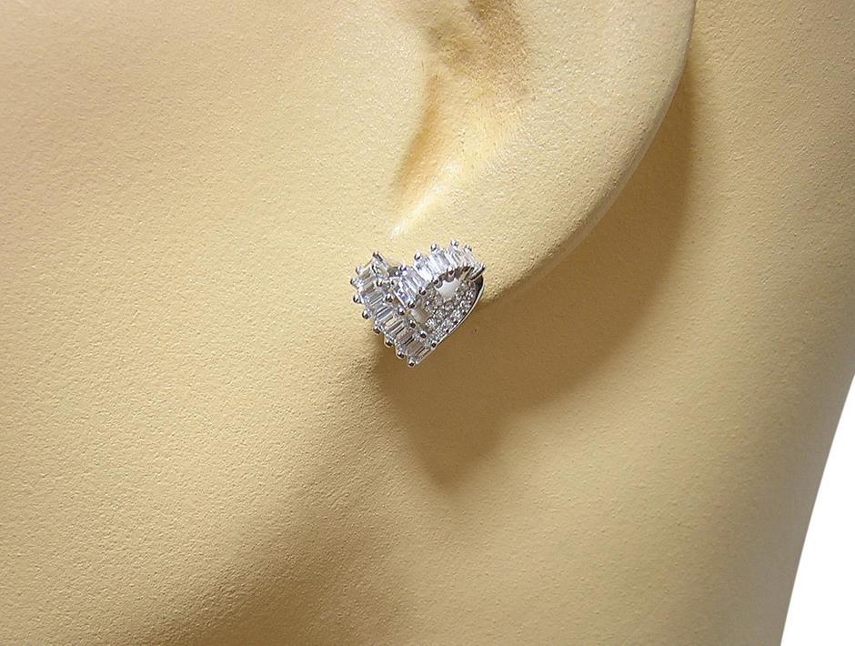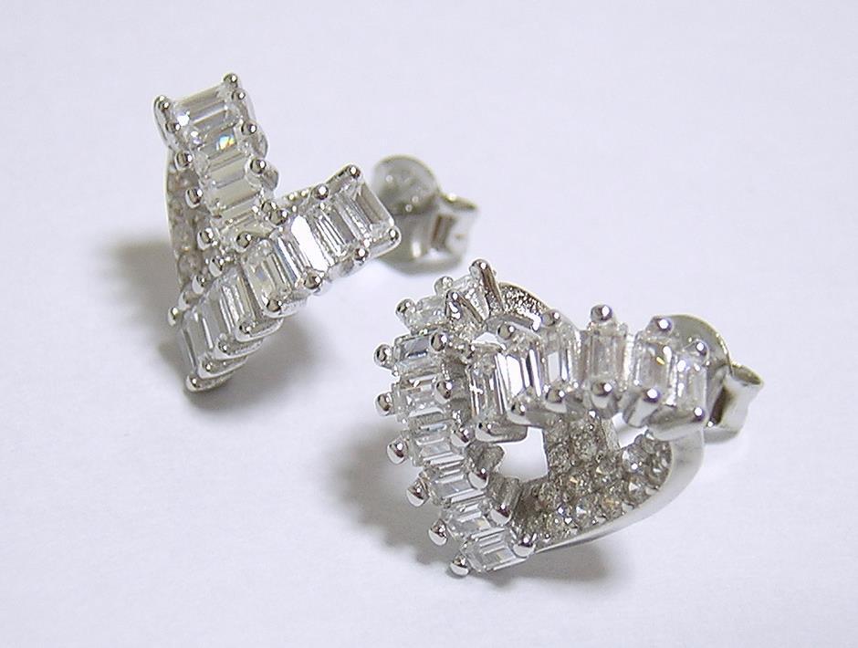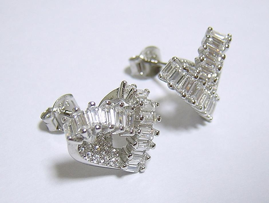 2種類のカットのキュービックジルコニアを使用したピアスです。 【石名】キュービックジルコニア 【カット】バゲットカット、ラウンドブリリアントカット 【重さ】3.2g 【サイズ】縦12mm×横13mm ポスト長さ10mm 【素材】シルバー925 (14金ホワイトゴールド仕上げ) 【刻印】925 【状態】新品 |
