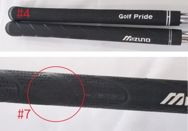 #4のみグリップ ゴルフプライド ツアーベルベット、他番手は純正グリップ(#7に指跡あり)