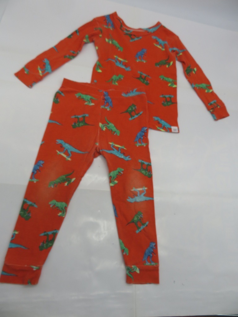 JM367★子供服 パジャマ ナイトウェア 恐竜 オレンジ 上下セット 古着 | |