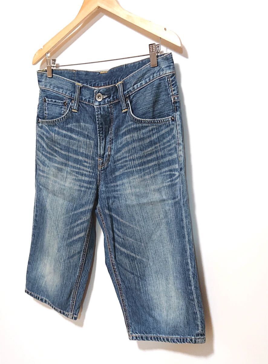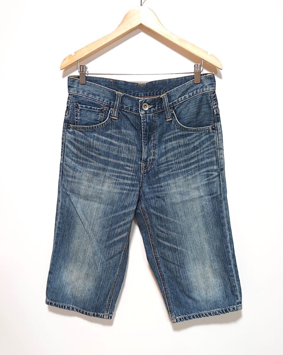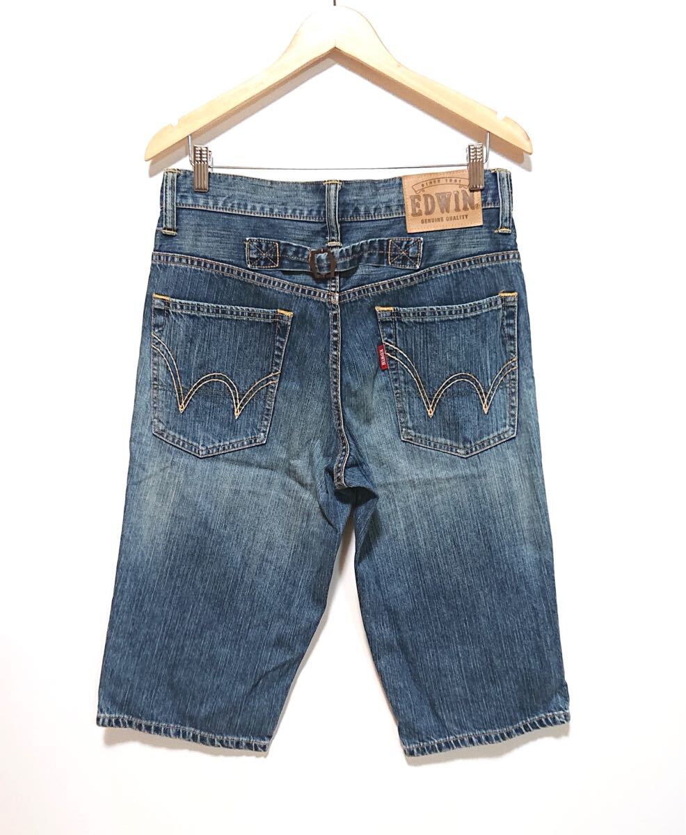 h3778gg EDWIN(エドウイン)サイズ30(M位) デニムパンツ ハーフパンツ ブルー メンズ カジュアル 春夏 着まわしコーデ ダメージ加工 お洒落