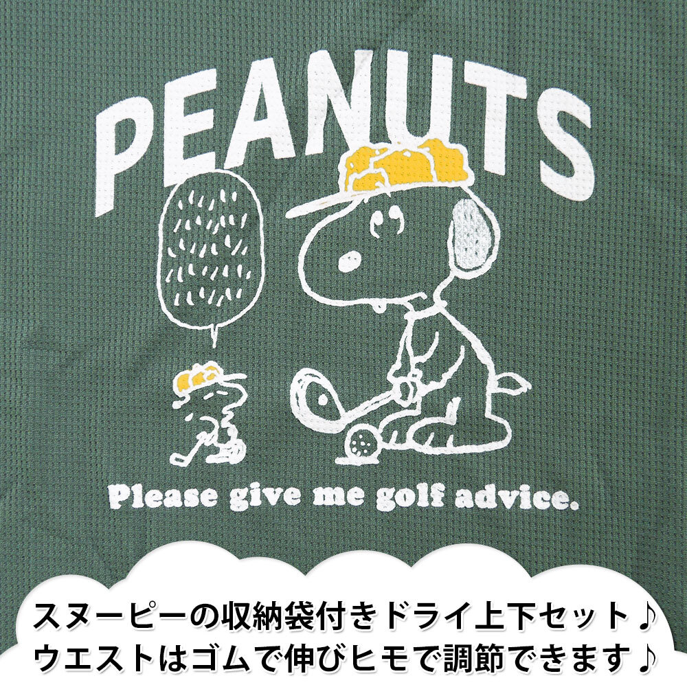 正規店仕入れの新品未使用品です ポリエステル素材で、吸汗速乾に優れます スヌーピーの収納袋付きドライ上下セット ウエストはゴムで伸びヒモで調節できます |