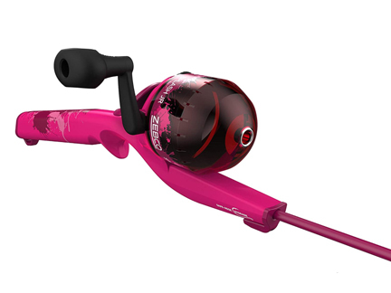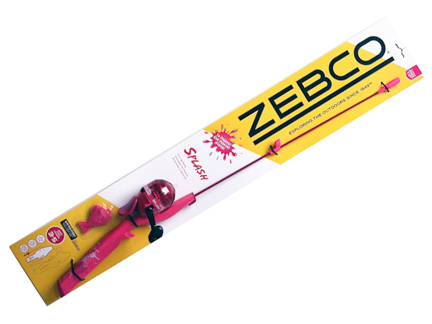 ゼブコ Zebcoの スプラッシュ Splash スピンキャストリール一体式ロッドです。色はピンクです。お子様の入門用タックルですので構造を簡略化するためにスピンキャストリールとロッドを一体化しています。キャスティング練習のみならず実際の釣りにも使用可能です。また水に浮きます。 2ft6in(実寸約73.5cm)のソリッド・グラスロッドで重さはリール・ライン込みで212gです。リールのギア比は2.6:1で、USA-6Lbsのナイロンラインが巻いてあります。キャスティング練習用のプラスティック・プラグが付属します。並行輸入品ですので国内保証書は付きません。またケース・カバー等は付属しません。