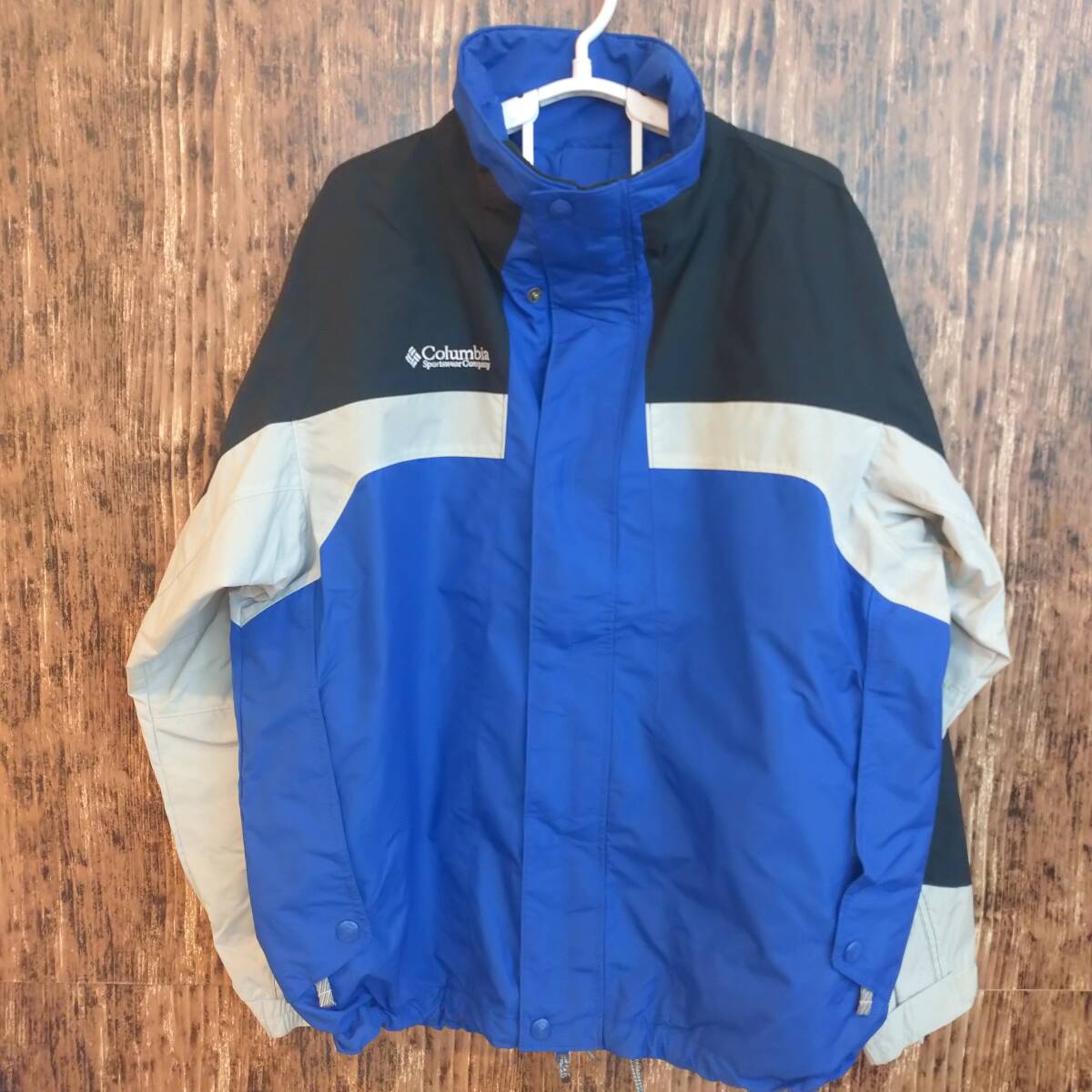 中古 アメリカ古着 Columbia ナイロンジャケット メンズ Lサイズ 青 黒 グレー ビンテージ カジュアル アウトドア用品 送料無料