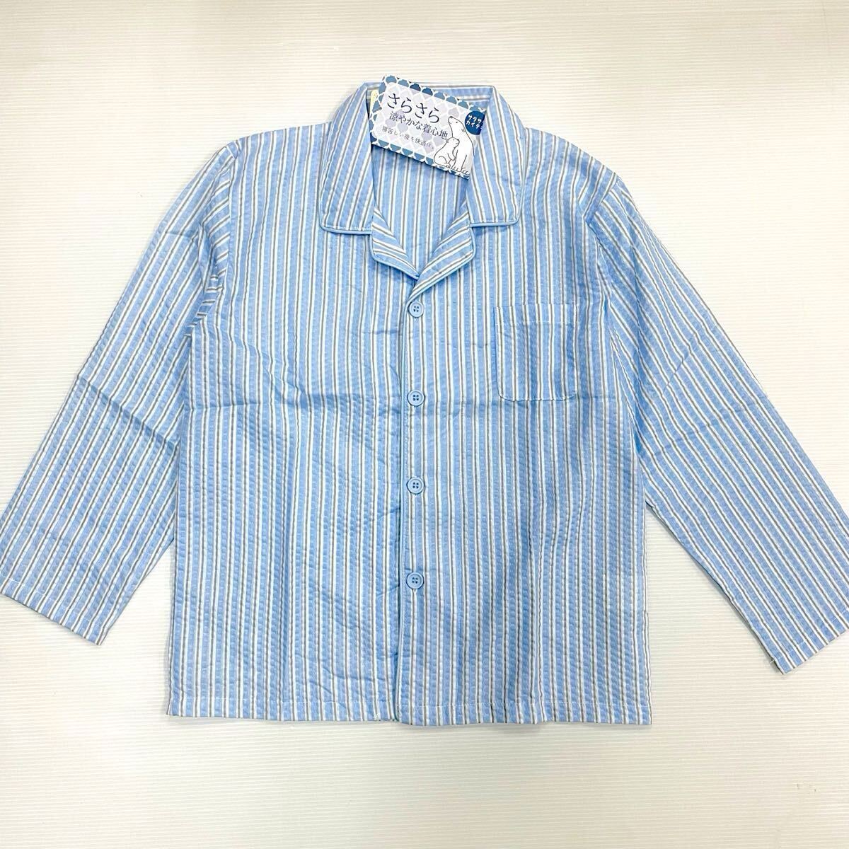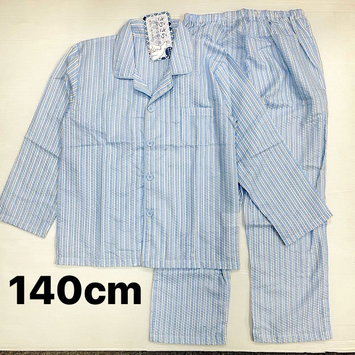 新品64073 サイズ140cm ライトブルー ストライプ ボーイズ長袖パジャマ さらさら快適素材 涼やかな着心地 春夏用 ルームウエア男子ジュニア