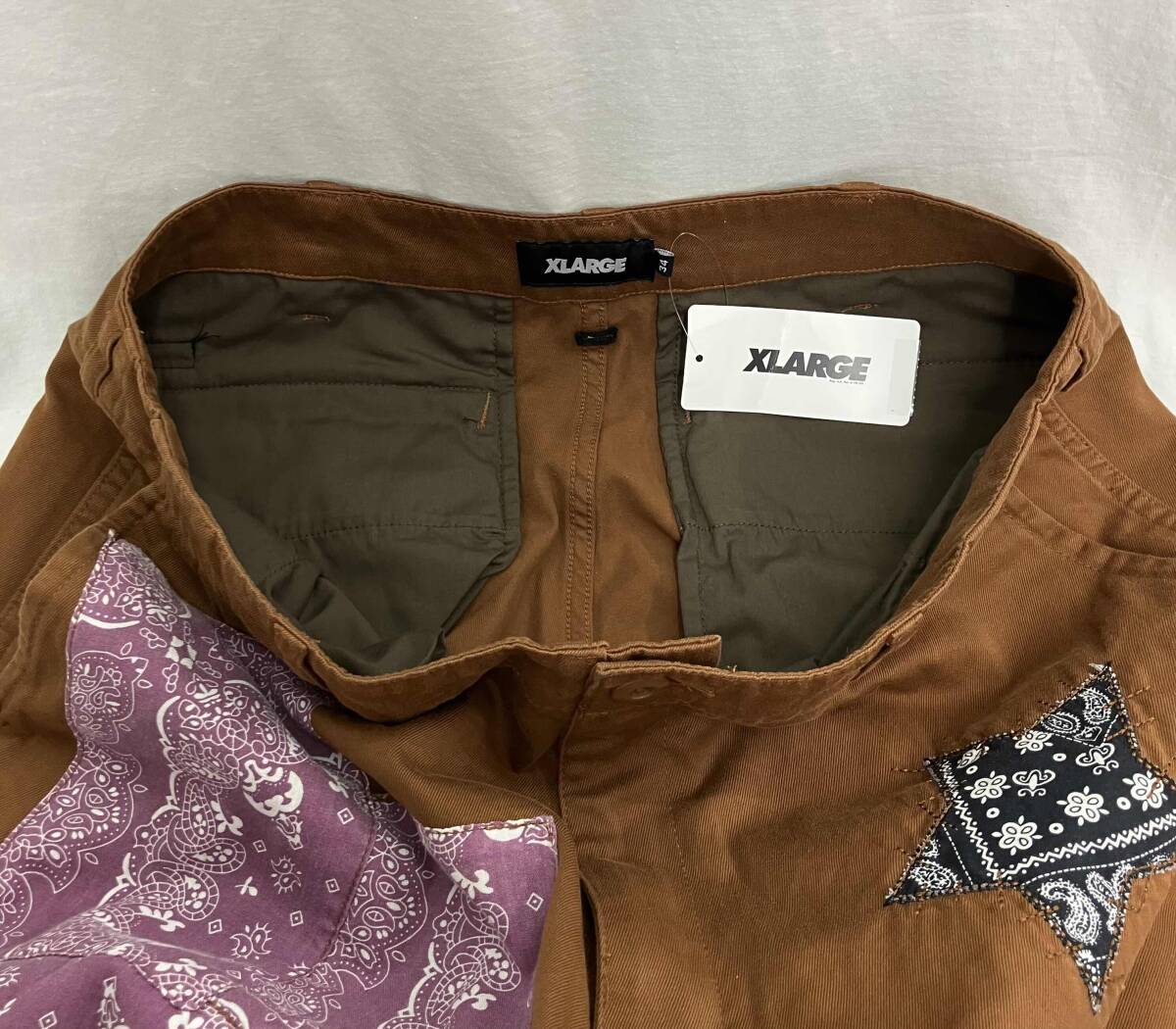 ジャンル/スタイル:ボトムス ブランド名:X-LARGE 表記サイズ:34 ウエスト:約82cm 裾幅:約25cm 股下:約72cm 股上:約34cm カラー:ブラウン 素材/加工/生地:綿・レーヨン 付属品:タグ |