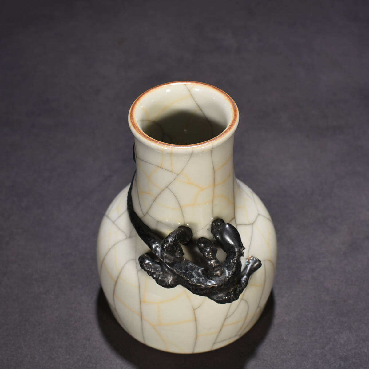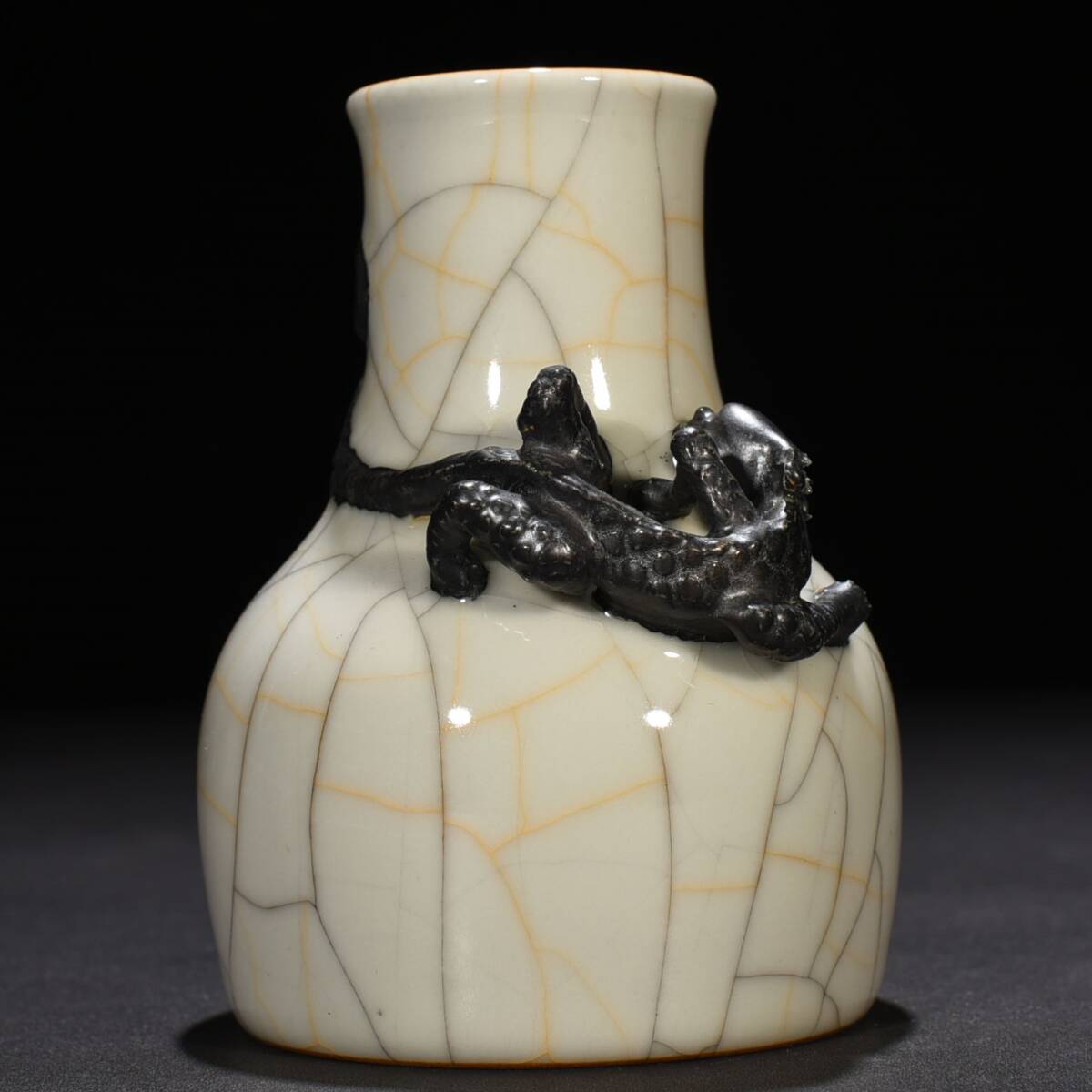 明時代 成化年製 哥窯 盤龍尊 高さ12.5 cm 直径9 cm ・中国骨董 ・珍品旧蔵・古賞物・時代物 724
