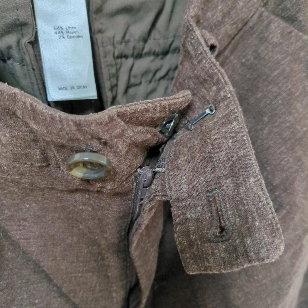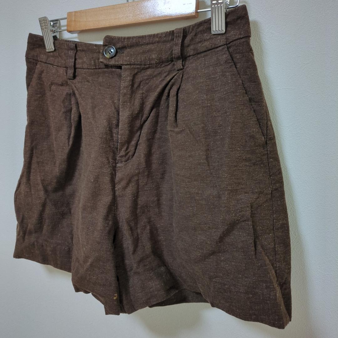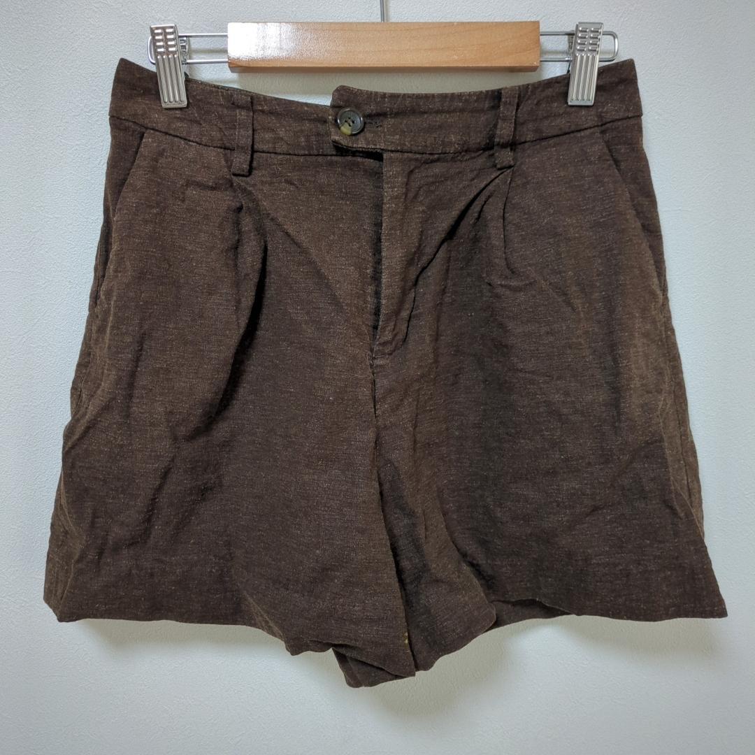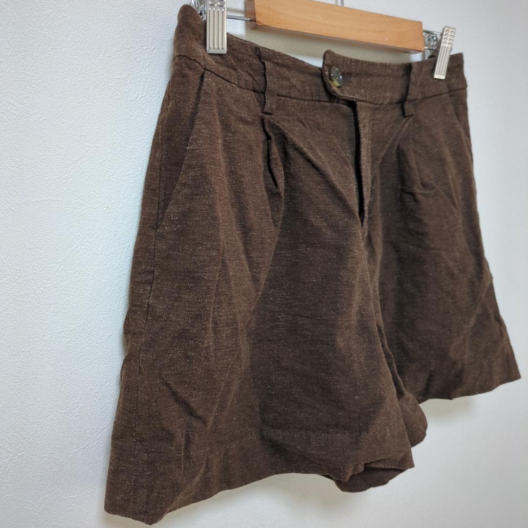 マウジー(1)リネンショートパンツ*麻混*涼しい*ポケット*ベルトループ*茶色