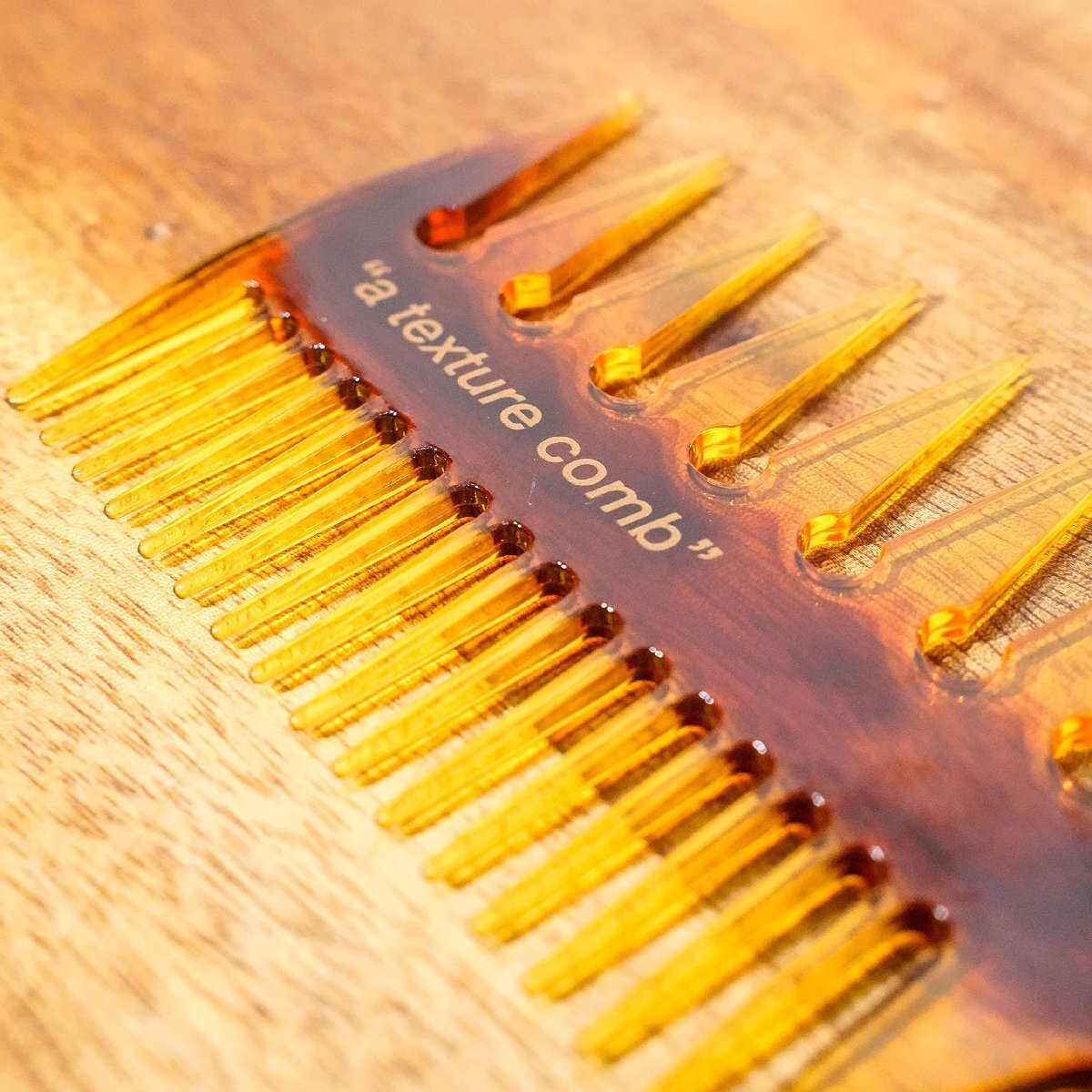 【3つのパターンを1つにした便利な櫛・コーム】粗目の方で大きな毛流れを作ってスタイリング。分け目もちゃんとつけられます。細かく揃えたいときは細目で。バーバースタイルもこれ一本でOK。質感を作り出せるコームです。