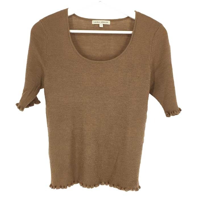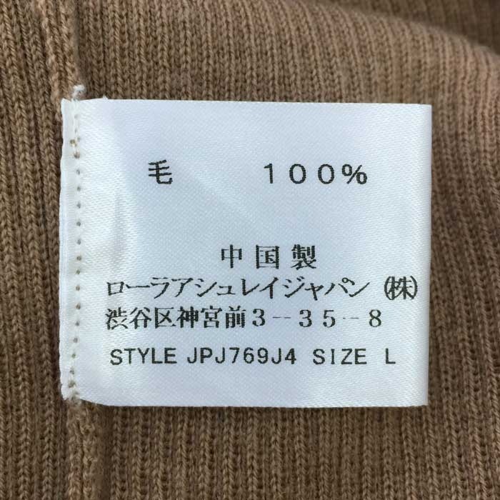 | 商品説明 | 【管理番号】 012342s02i 【ブランド名】 LAURA ASHLEYローラアシュレイ 【商品名】 【アイテム】 半袖ニット 【型番】 【サイズ】 '平置採寸(肩幅:約32.5cm・身幅:約39cm・袖丈:約27cm・着丈:約52cm) 【色・柄】 キャメル 【素材】 毛100% 【付属品】 【外観ランク】Bランク【内観ランク】 【商品補足説明】 付属のリボンは紛失しています。ウエストリボン用のループがあります。前身頃にピリング(毛玉)があります。 | ||