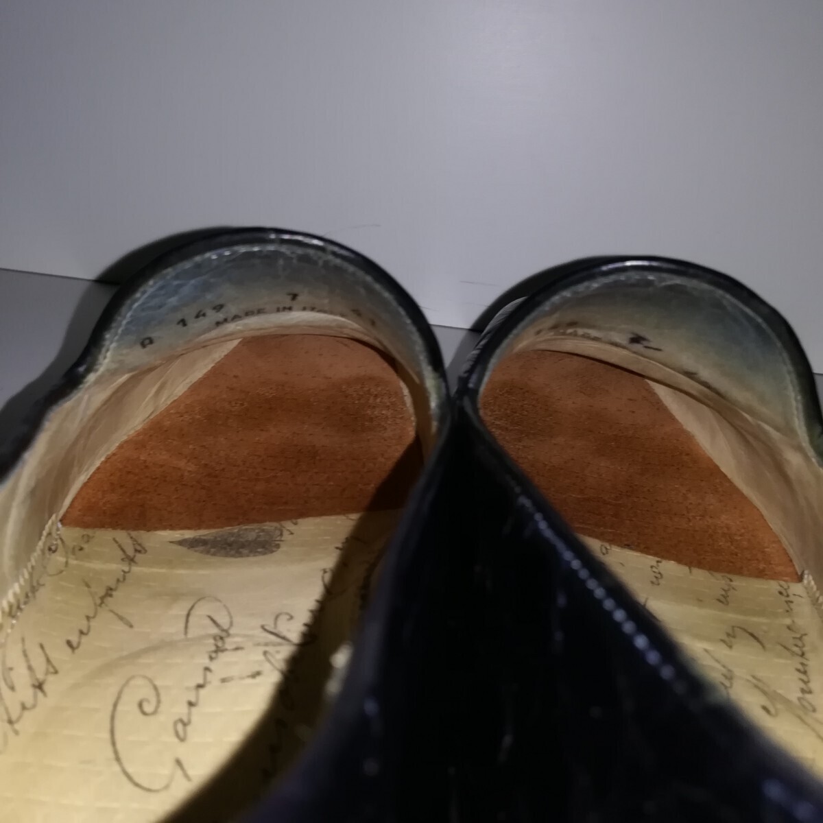 商品説明 | 埼玉県からの発送になります。 おてがる配送 宅急便にて発送致します。 発送は落札してから1~3日見ていただければと思います。諸事情により発送が遅れる可能性がございます。 中古品のポールスミス タッセルローファーです。 商品詳細 お色 ブラック サイズ 41 恐らく革靴サイズ26.5cm前後 アウトソール全長約29.8cm 全幅 約9.3cm (素人採寸ですので多少の誤差はご容赦ください) ●状態①「外観」 履きジワ、擦れ、傷、タッセル部分に黒い汚れがございますが、比較的良好な状態です。 アッパーは牛革かエナメルかと存じます。 ●状態②「ソール・インナー」 ・インソールロゴは残っています。 ・踵の削れは2mmもありません。 ●その他・付属等 シューズキーパーや箱、袋といった付属品はございません。 神経質な方はご購入はお控えくださいますようお願い致します。 こちらに重大な過失があった場合のみ返品可(それ以外のサイズ違い等といった理由は不可。) また、お届けしてから1週間以上経過した物についても不可とさせていただきます。上記返品期限経過後の取引ナビ等々からの返品についてのご連絡に関しては対応致し兼ねますのでご了承ください。 出品商品に関しましては他で譲り先が見つかった、在庫処分等の理由で予告無く出品を取り下げる場合もございますので、予めご了承ください。 ※領収書の発行は受け付けておりません。 見落としている傷や汚れ、また中古品などには検品時に気づけないような経年の使用や保管による内部劣化や消耗などがある可能性が御座います。また、シューキーパーを入れて撮影しておりますので実際と印象が異なる場合がございます。 重ねてになりますが、ご理解のある方だけ、ご入札下さいませ。 商品はプチプチに包装して発送致します。スエード素材の商品はプチプチの跡が付く可能性がございますので、ブラシや手で均していただくようお願い致します。 商品写真は撮影時の明るさや光の当たり具合、お使いのディスプレイ(彩度、明るさの設定)等によって、実物の色味と差が生じる場合がございます。 また、当方は素人ですので予めご了承ください。 他にも様々出品しておりますので、どうぞご覧ください ↑↑↑↑↑↑↑↑↑↑↑↑↑↑↑↑ ■決済金額・決済方法■ 【決済金額】 落札価格+送料が決済金額となります。 【決済方法】Yahoo!かんたん決済(クレジットカード、コンビニ、銀行振込、PayPay等々)にてお支払いください。 ○ご決済(ご入金)確認後なるべく速やかに発送いたします。(諸事情により遅れる場合がございます。) Yahoo!かんたん決済お支払い期限内にお支払いお願い致します。 ご落札頂いた際にこちらから連絡をすることは基本的にはございません。重要な連絡事項がある場合はご連絡しますのでよろしくお願い致します。 ●お問い合わせ等、気づかないことがあり即答できない場合がありますので、あらかじめご了承ください。 直接お取引やご対応、電話でのお取引やご対応は致しかねております。 以上の内容をご理解して頂いた方のみ入札下さい。 埼玉県公安委員会古物商許可衣類商 (写真機類・事務機器類・道具類・機械工具類・皮革ゴム類) 第431070035500号 |