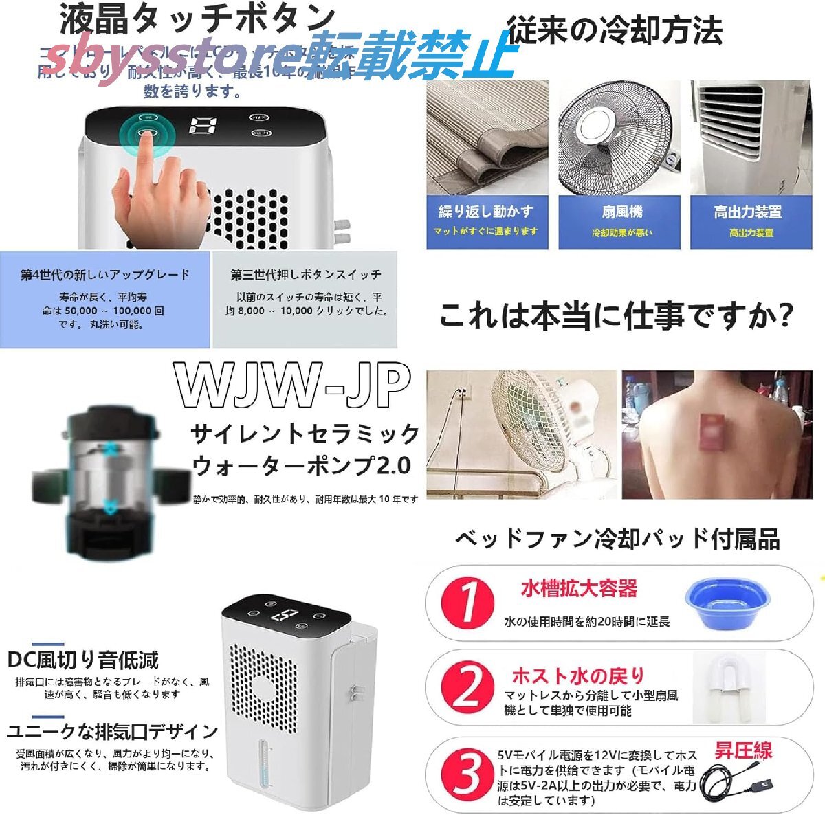 12V・8W 風速調整可能 水が流れる冷却マットレス アイスマット 注水式敷きパッド 冷感マッ 160*70cm