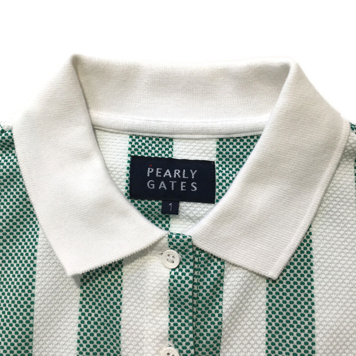 coco 中古【値下げ】 パーリーゲイツ PEARLY GATES レディース 半袖ポロシャツ 1(M) 白×緑 鹿の子 レターパックプラス発送可 99757
