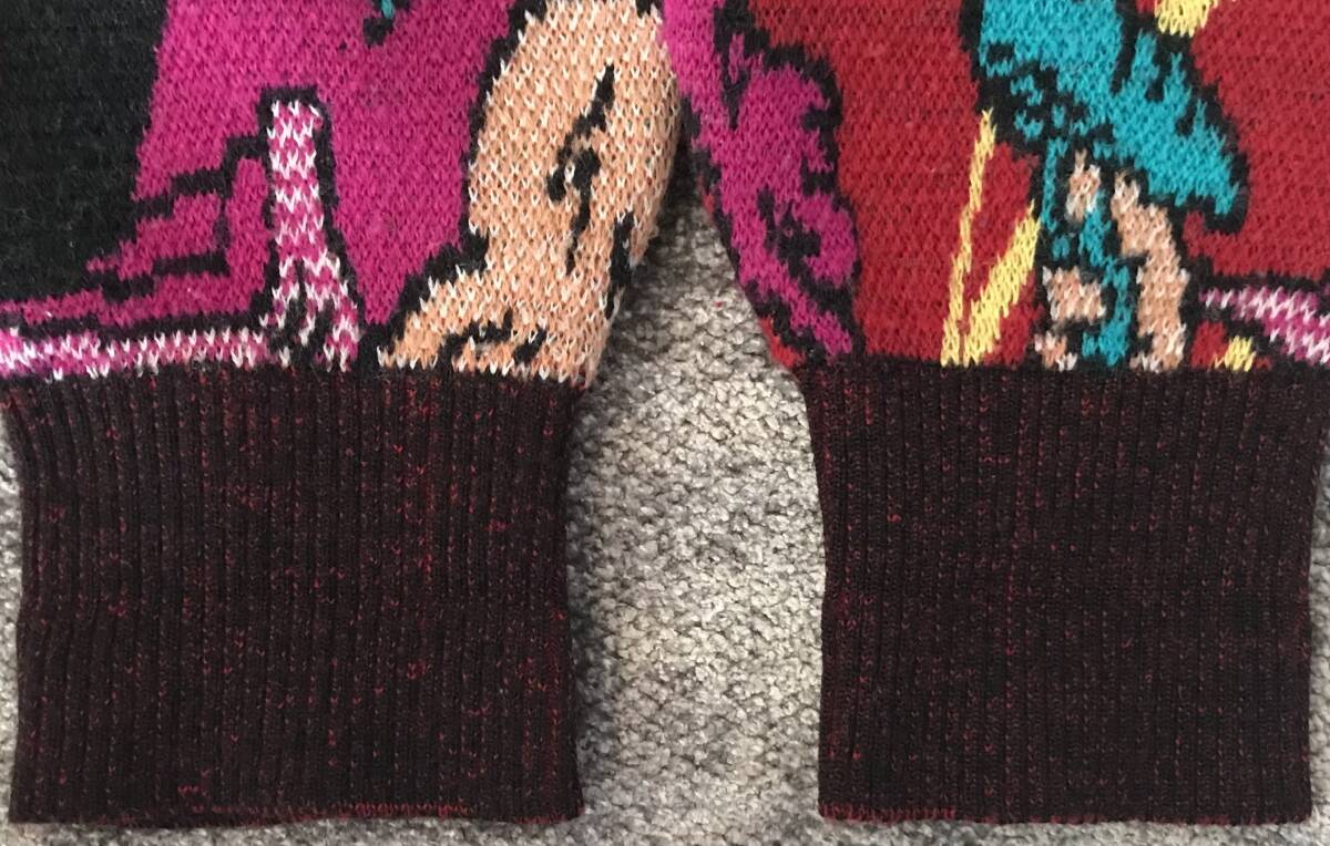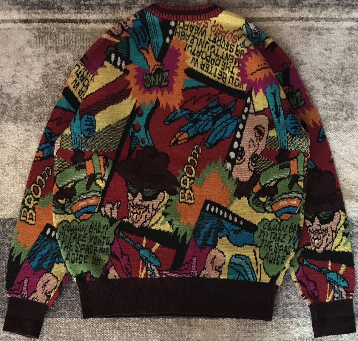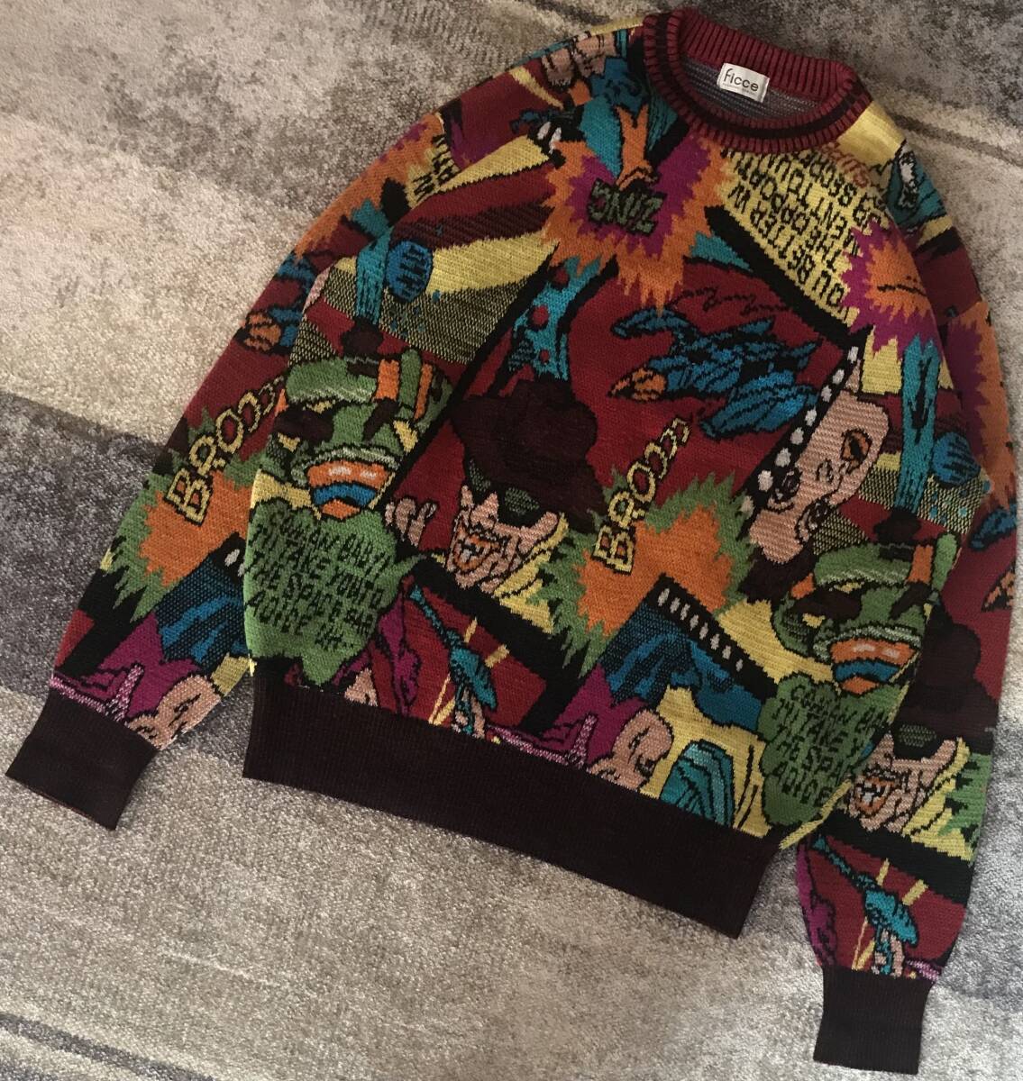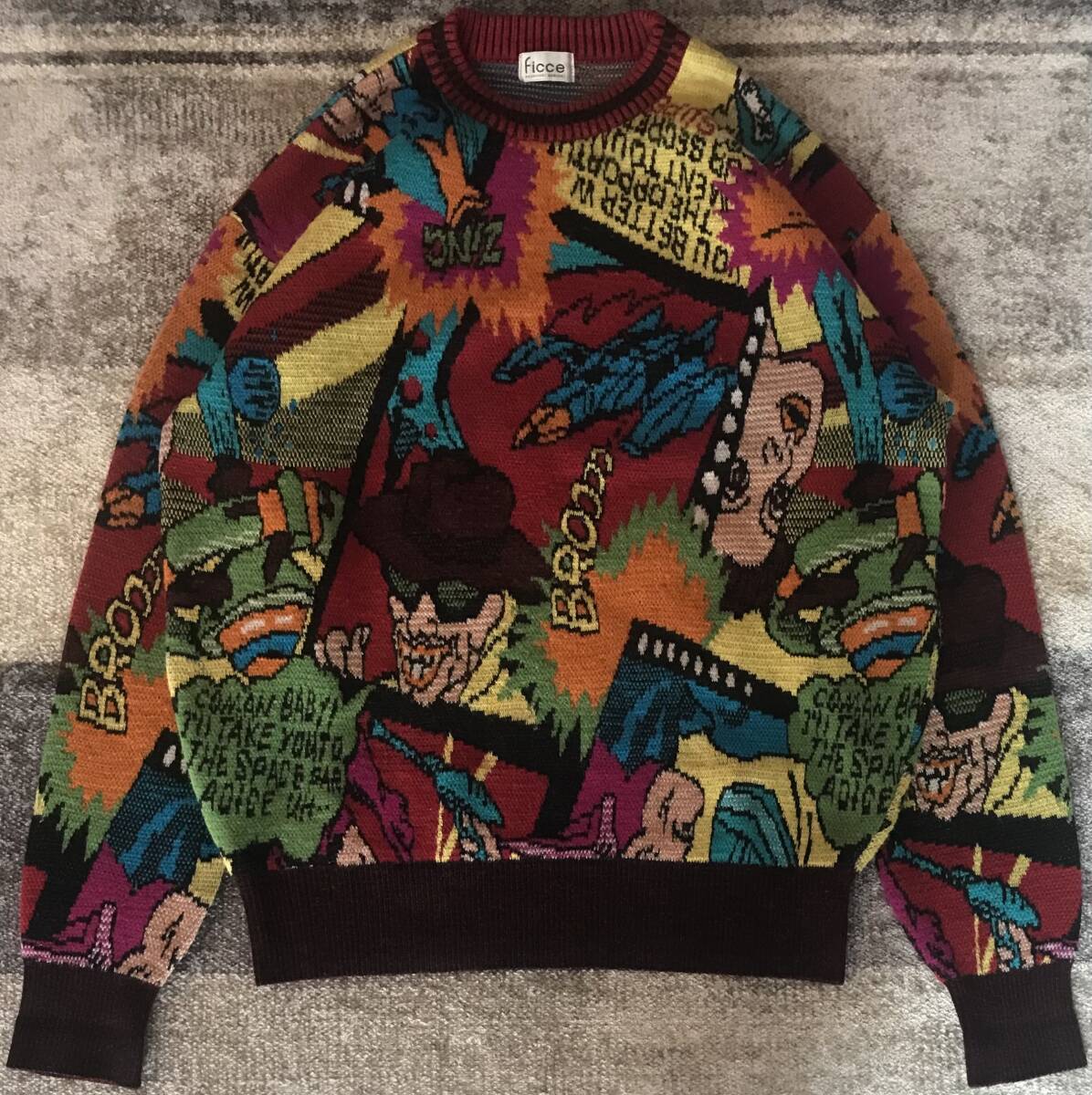 今回の出品アイテムは90's vintage、FICCEのアーカイブピース、アメコミ柄ニットセーターです。