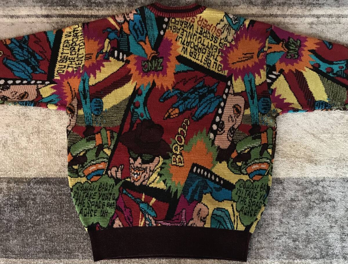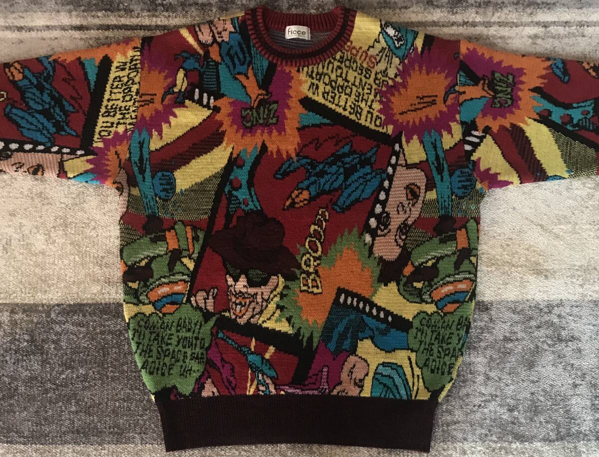 この機会に最高のアメコミ柄、90's vintage、FICCEのニットセーターを是非いかがでしょうか?