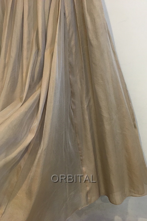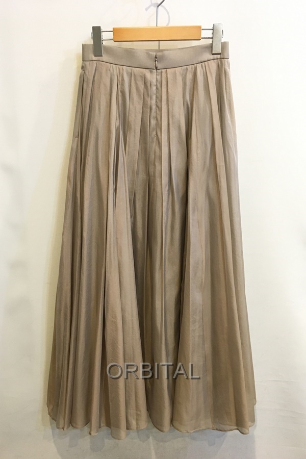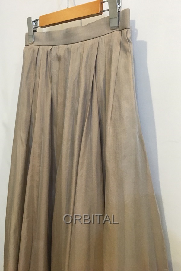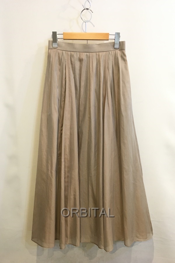 ebure エブール シルクポリエステルギャザーロングスカート マキシ シアー ベージュ レディース 36 日本製 ※数か所裾シミ