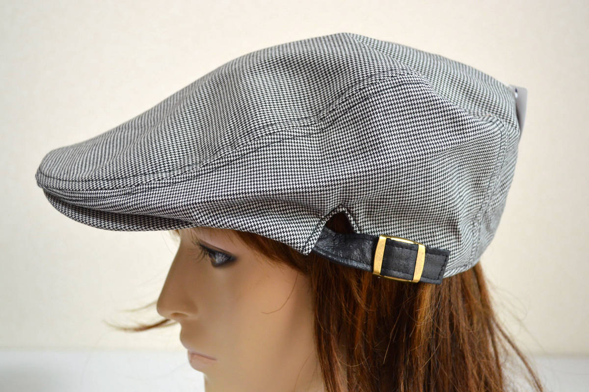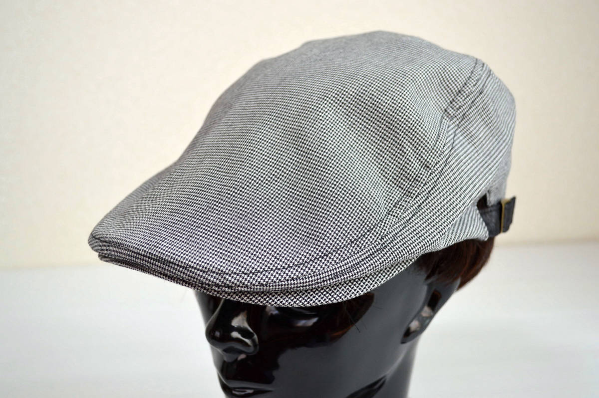 大きいサイズ★頭周61cm★マイクロ千鳥ハンチング/新20157/BKxGY