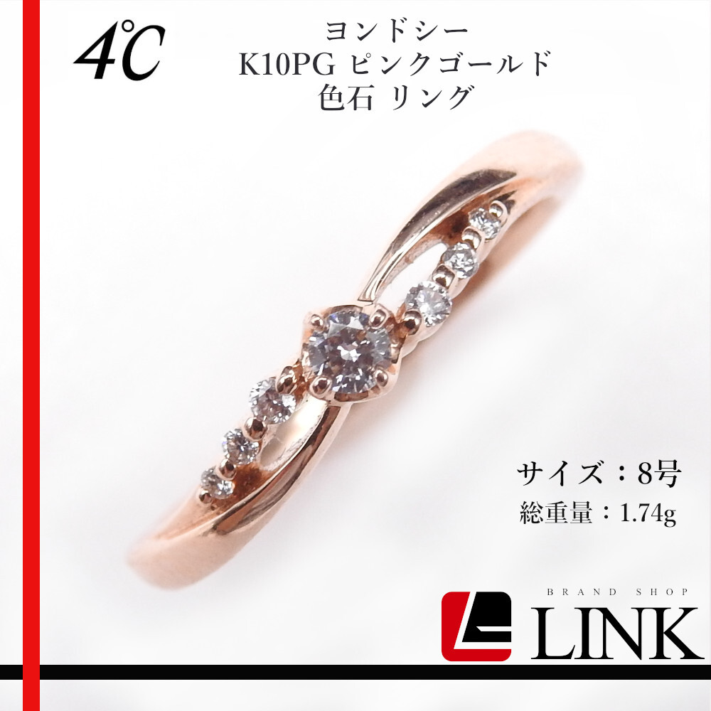 4℃ ヨンドシー K10 ピンクゴールド 色石 リング レディース 8号
