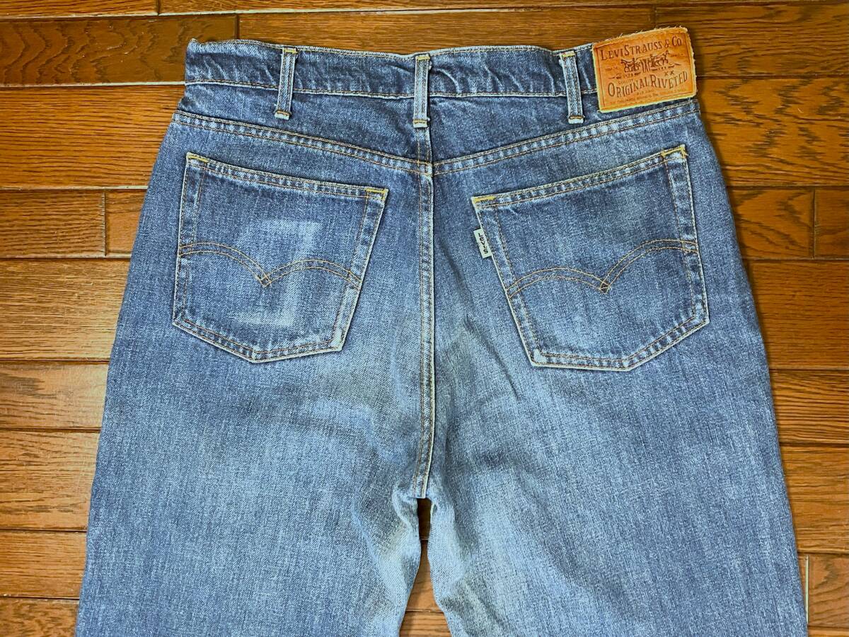状態は股の右に小さな織ムラ、薄い汚れ、膝下に色落ち、左腿に織ムラ、尻に薄い汚れがございます。