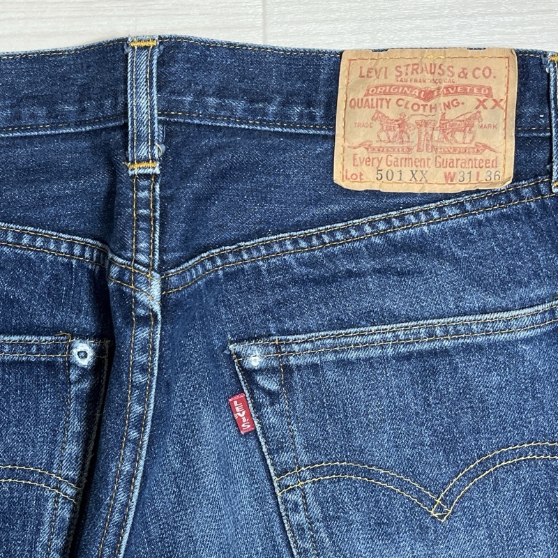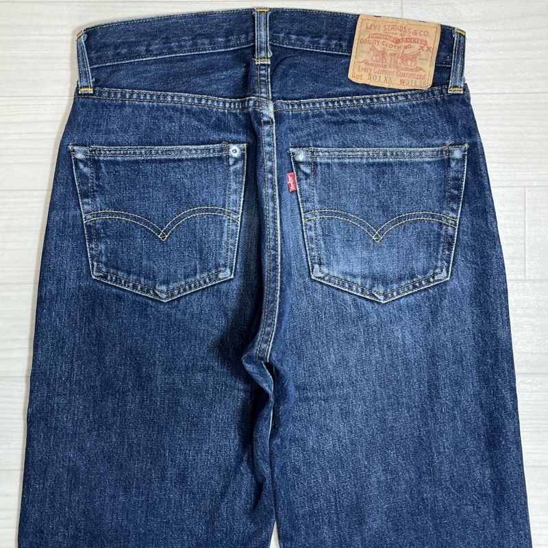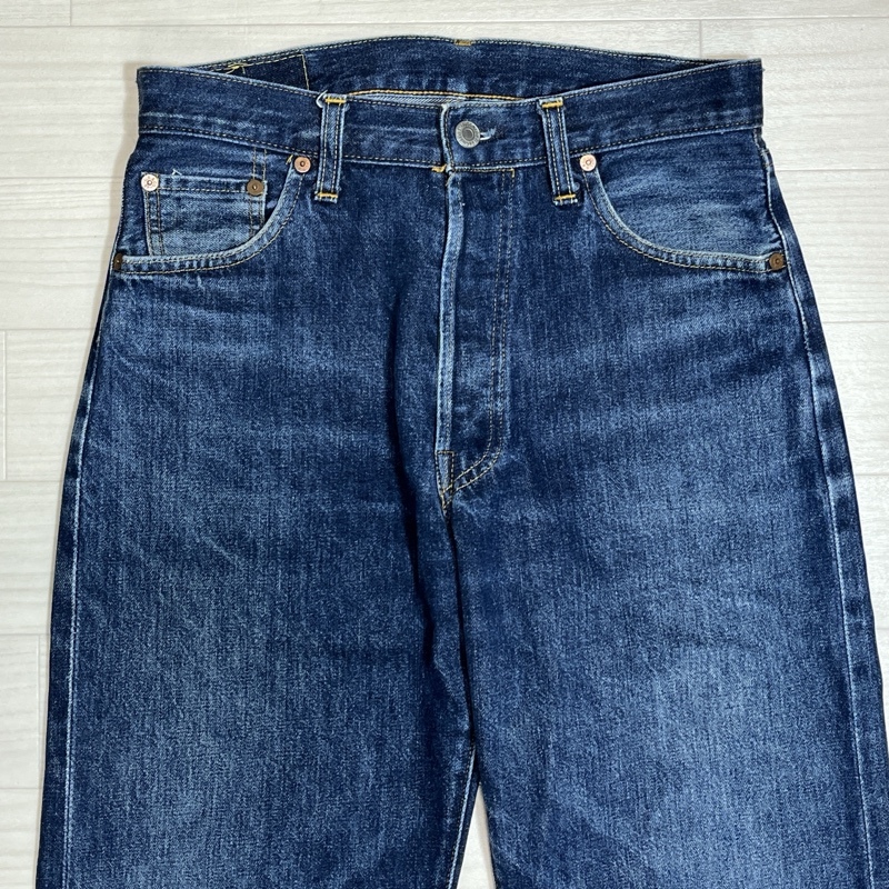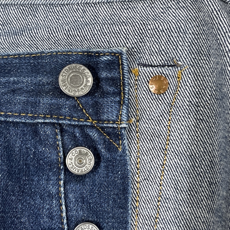 ディティール : Vステッチ、ビッグE、隠しリベット、バックポケットシングル、ボタン裏刻印555等