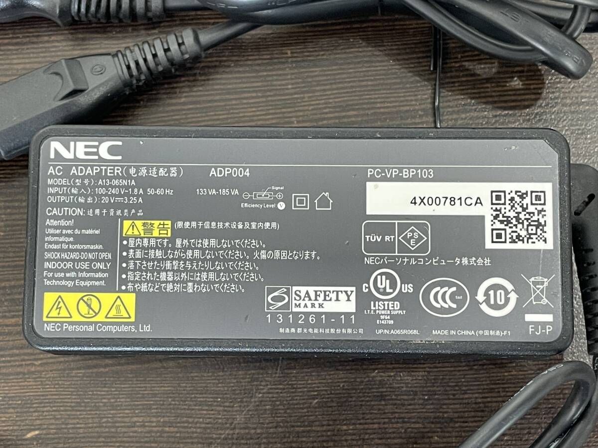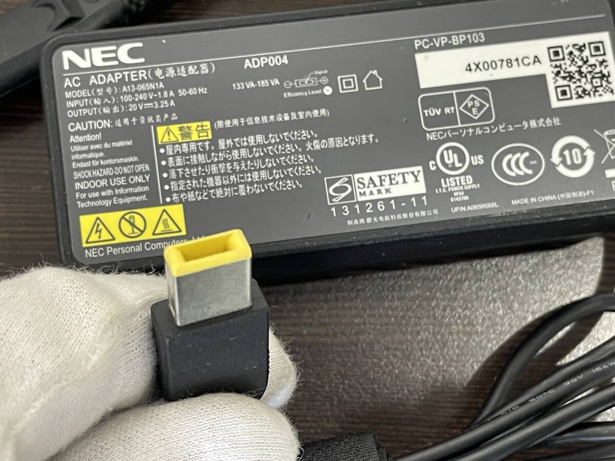 ★【ノートパソコン用 ACアダプター】NEC 純正 ACアダプタ ADP004 (A13-065N1A) 出力:20V 3.25A★動作品 ゆうパケット発送可能