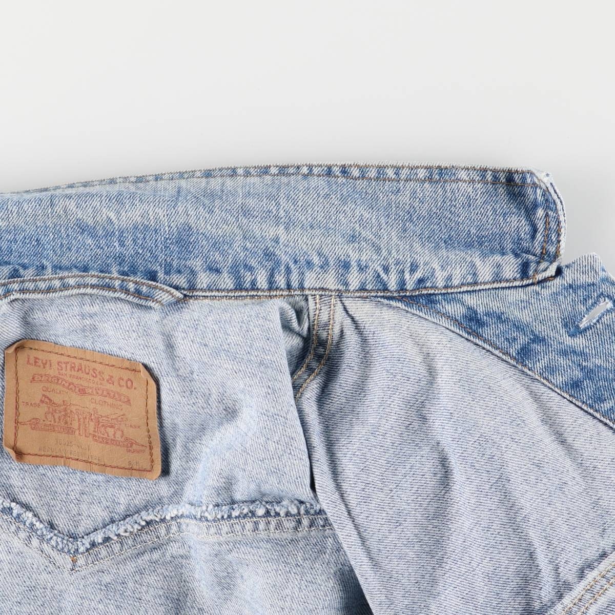 | 表記サイズ: S 着丈: 57.5cm 身幅: 57cm 肩幅: 51cm 袖丈: 60cm ![]() | ![]() ランク:C USEDデニムですので使用感、擦れ、色落ちなどございますが、まだまだご愛用していただけます。 古着という事をご理解の上ご注文よろしくお願いします。 【状態追記】 ●前、襟(内側)に汚れ |