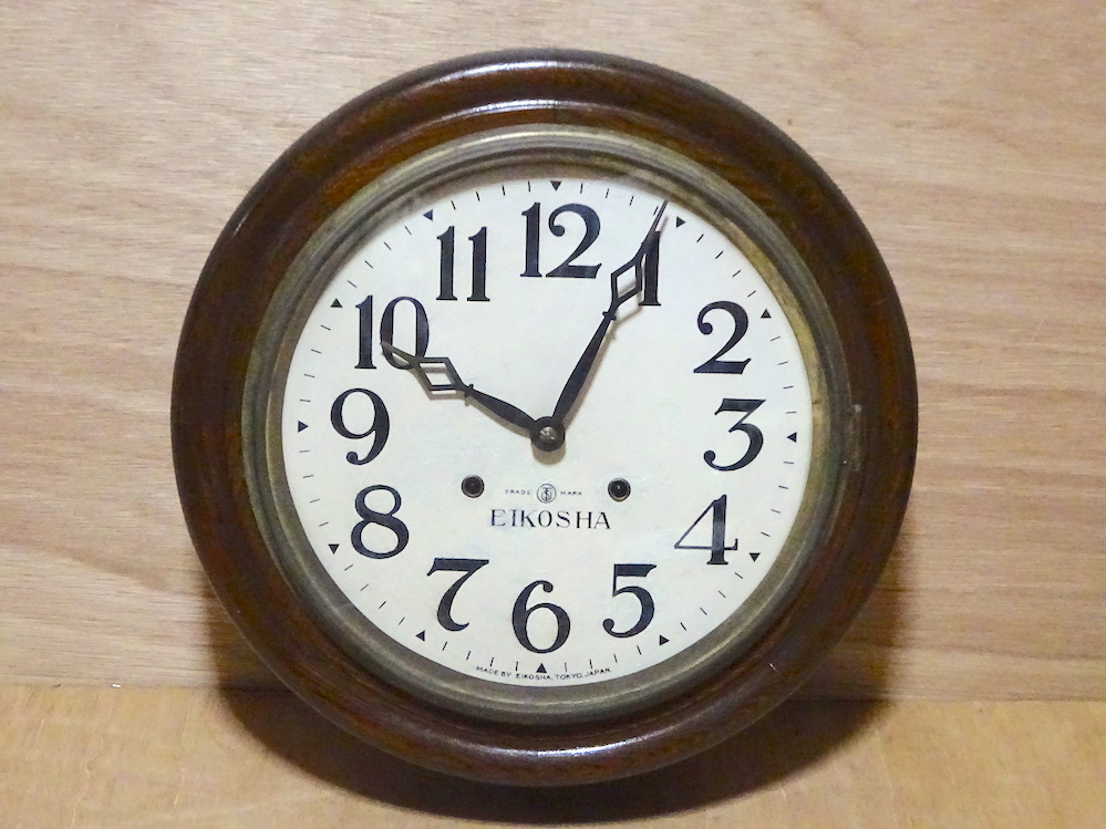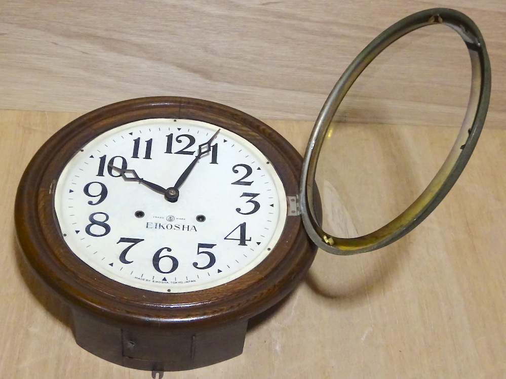 ■即決■ 動作品 調整済み EIKOSHA 英工舎 丸時計 ゼンマイ式 柱時計 掛け時計 ゆらゆらガラス アンティーク レトロ ヴィンテージ