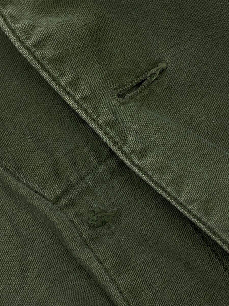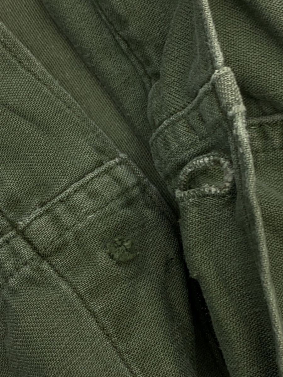 ユーズド品のため、背面ヒップ部分や両足ひざから腿付近、背中部分など数か所に穴がございます。また、第1、第3、第5ボタンが欠損しており、ポケット部分に白い汚れ、袖口や背タグのほつれなど、全体的に使用感がございます。また、店頭同時販売のため、商品陳列中に商品の状態が変化する場合がございます。何かご不明な点がございましたら、お気軽に店舗までお問い合わせくださいませ。、 |