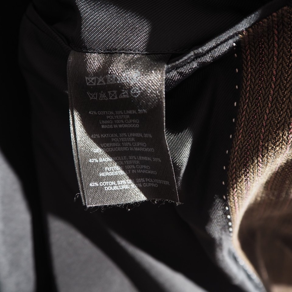 ポケット :表=胸×1、サイドフラップ付き×2(全てしつけ糸付き)  内側=1