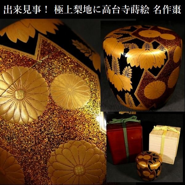 商品説明 | ~寸法~ 直径 約 8.1cm×高さ 約 8.0cm 極上の梨地に金蒔絵の施された 最上級クラスの名作棗でございます。 二重箱がございます。 大切にして頂ける方の元へ届けば幸いでございます。 ~状態~ 全体的に見て状態は概ね良好です。 画像にてご確認下さい。 許容範囲内の時代傷みはご理解下さい。 |