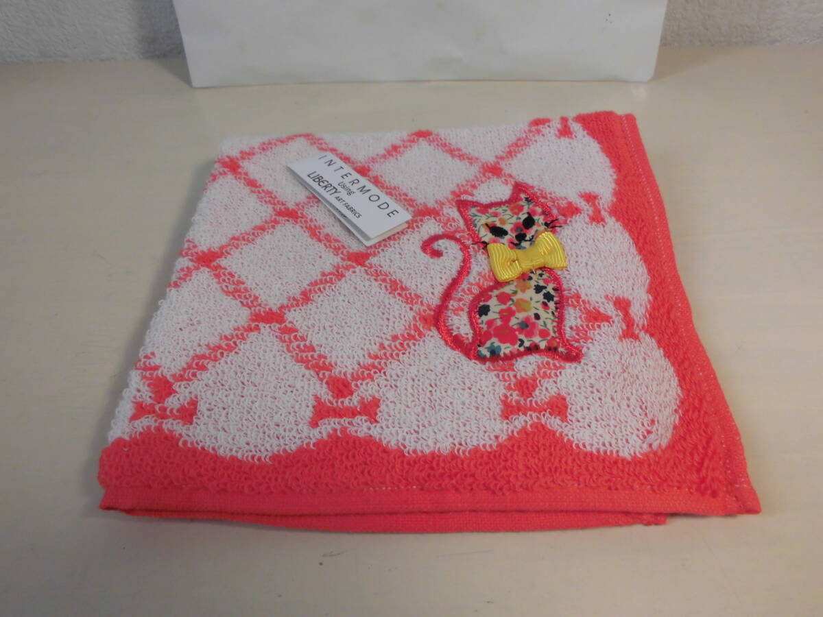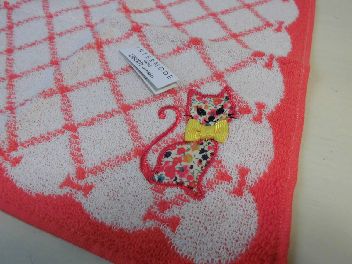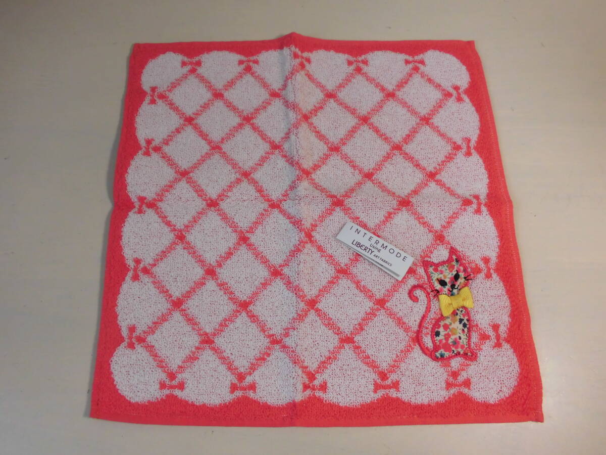 送料140円~ 百貨店購入 INTERMODE using LIBERTY リバティ タオルハンカチ ネコ リボン 川辺 (株)NO41027