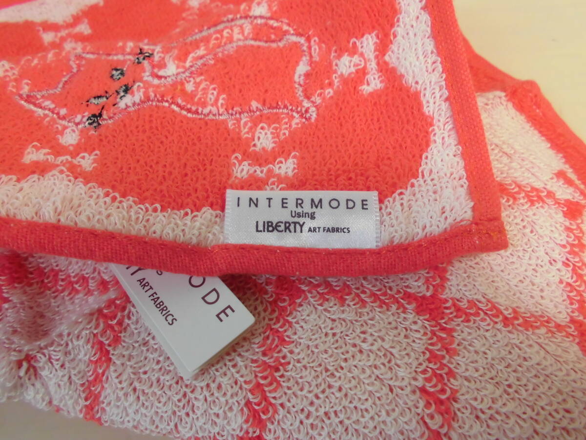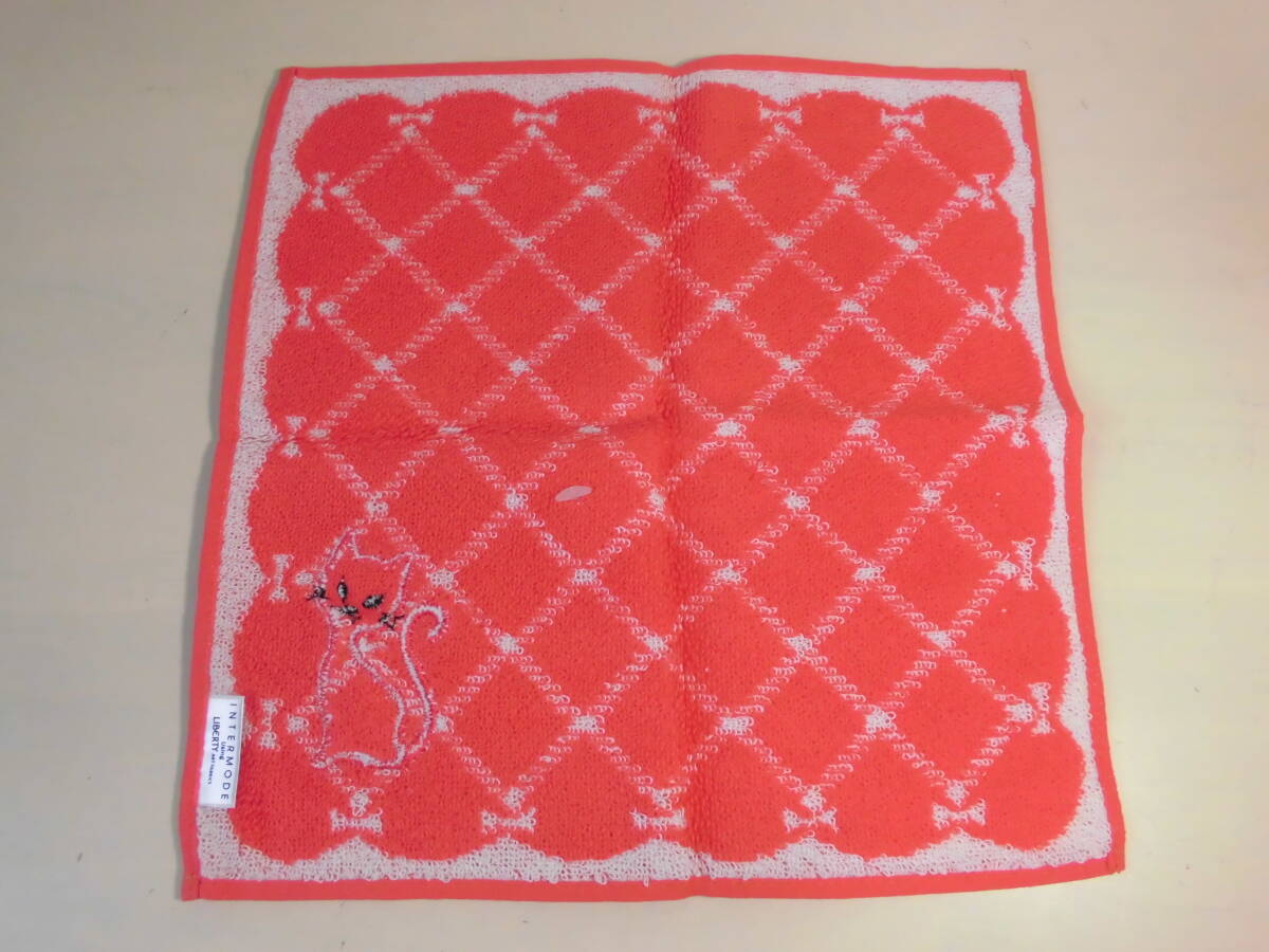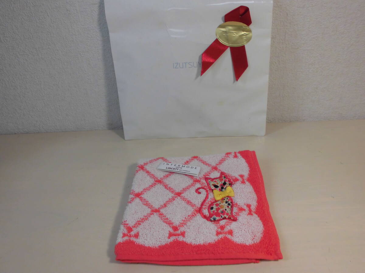 送料140円~ 百貨店購入 INTERMODE using LIBERTY リバティ タオルハンカチ ネコ リボン 川辺 (株)NO41027