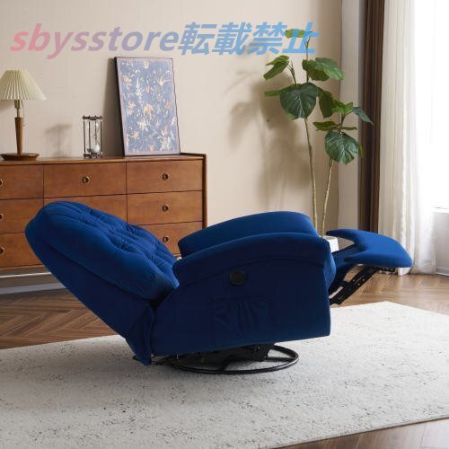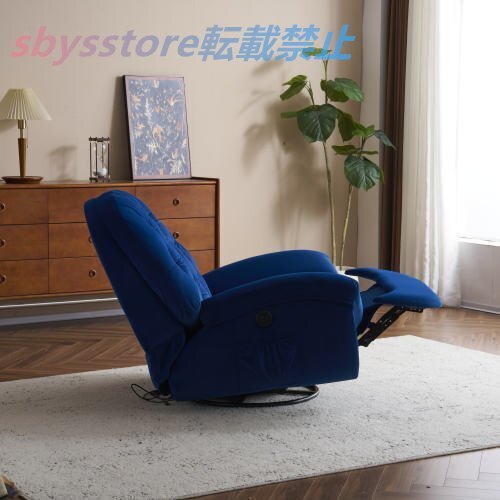 電動1人掛けソファー リクライニングチェア ゲーミングチェア ベルベット 貝殻のデザイン 270度回転式 背もたれ調節105-165度 USB付き