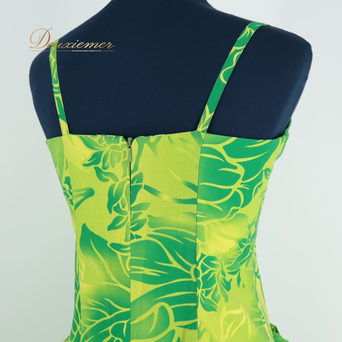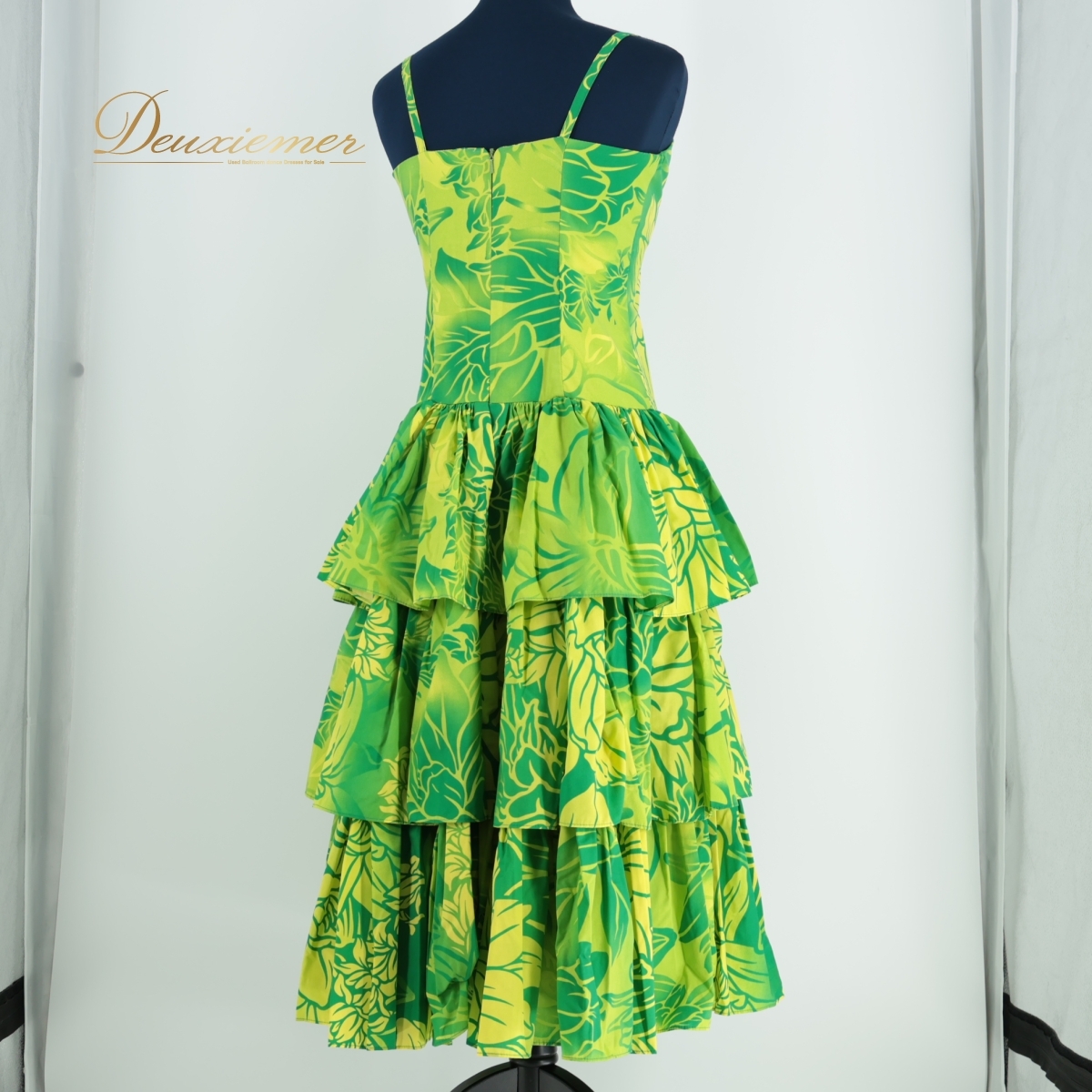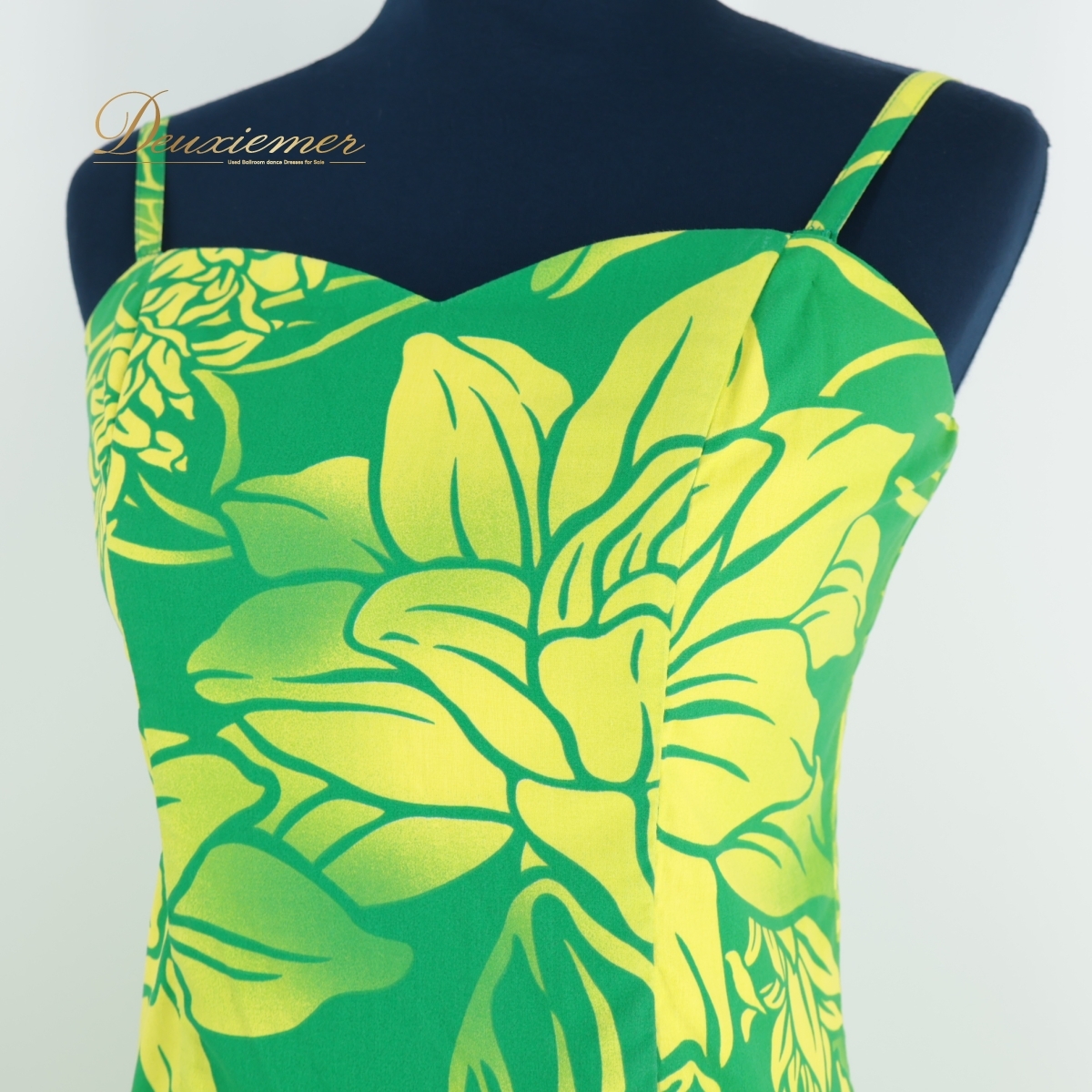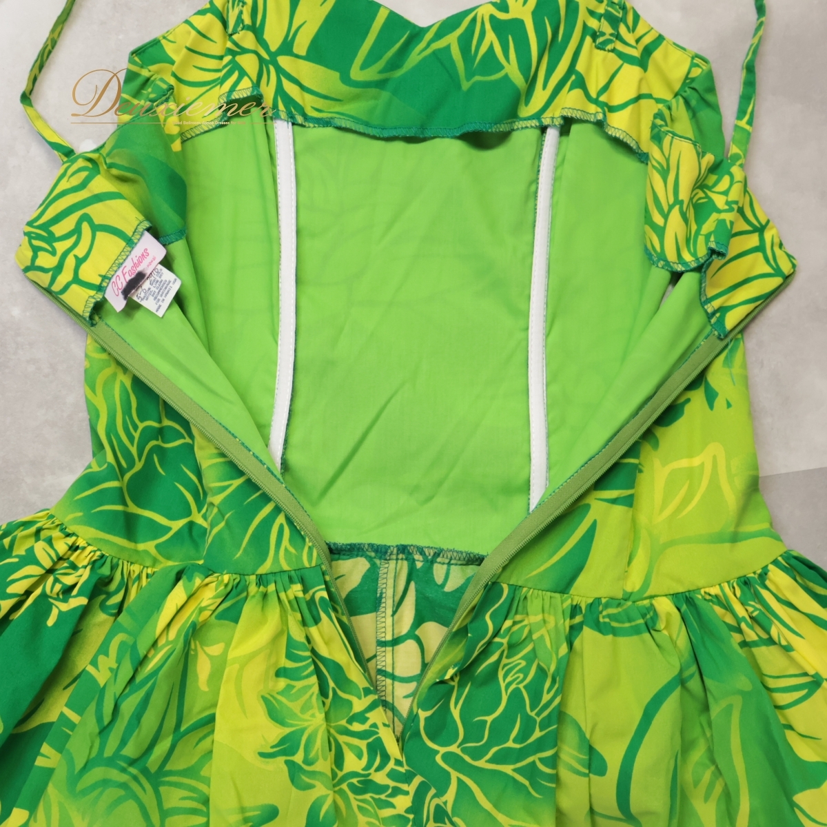 | 【商品名】フラダンス衣装 ワンピース ドレス 【サイズ】5-6表記 平置き実測:総丈約108cm(裾~肩部まで)、身幅約40cm、ウエスト約38cm ※実測の為、多少の誤差はご了承ください 【仕様】 ・背面ファスナー仕様 ・伸縮性無し ------------------------------------ 【ポイント】 ▽CC Fashions ハワイ製 ▽鮮やかなグリーン×イエロー ▽花柄で華やかな印象に ▽女性らしいキャミソールデザイン ▽3段フリルでボリューム◎ ------------------------------------ 【撮影時使用トルソー】 種 類:女性用トルソー9号 (一般的に使用されるサイズです) サイズ:肩幅約37cm、バスト約88cm、ウエスト約66cm、ヒップ約89cm |