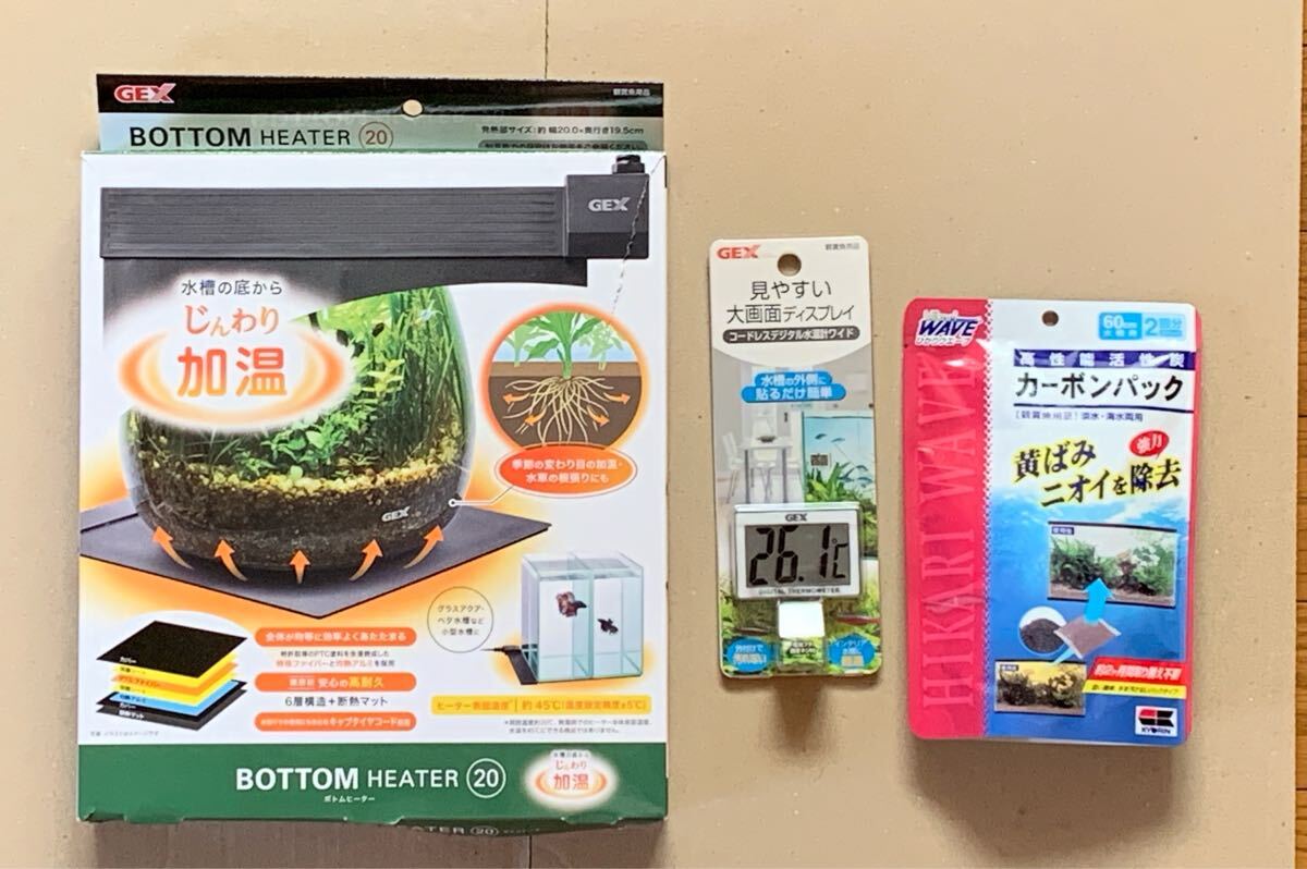 熱帯魚用 GEX ボトムヒーター 20 コードレスデジタル水温計ワイド 高性能活性炭カーボンパック 3点セット