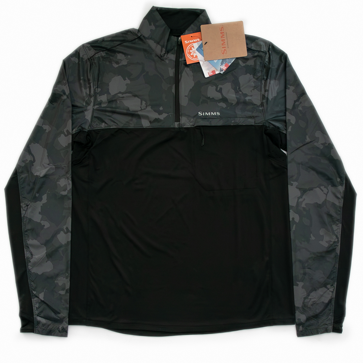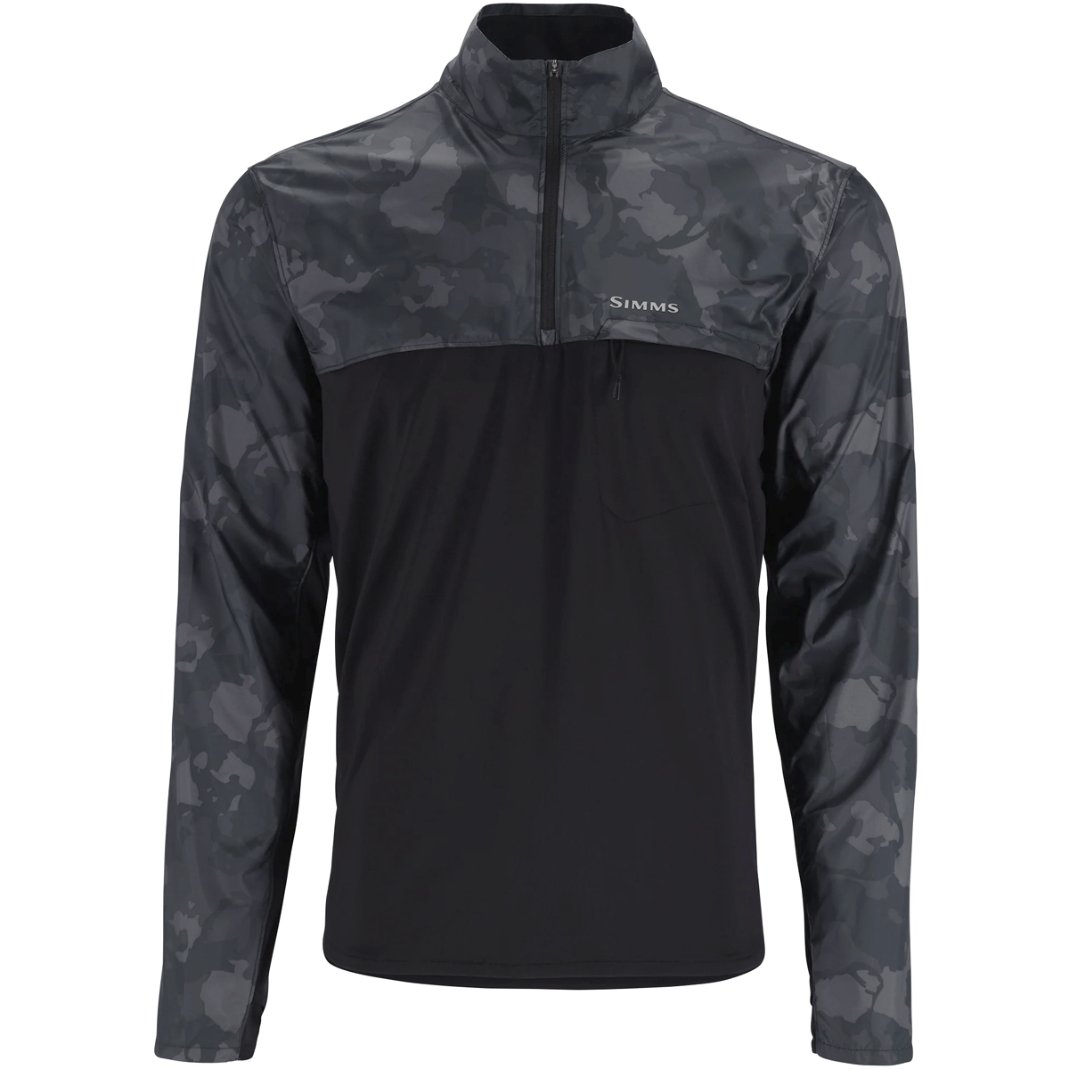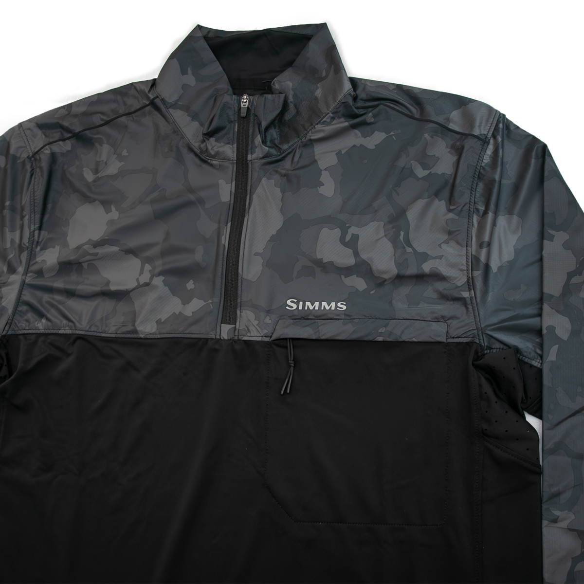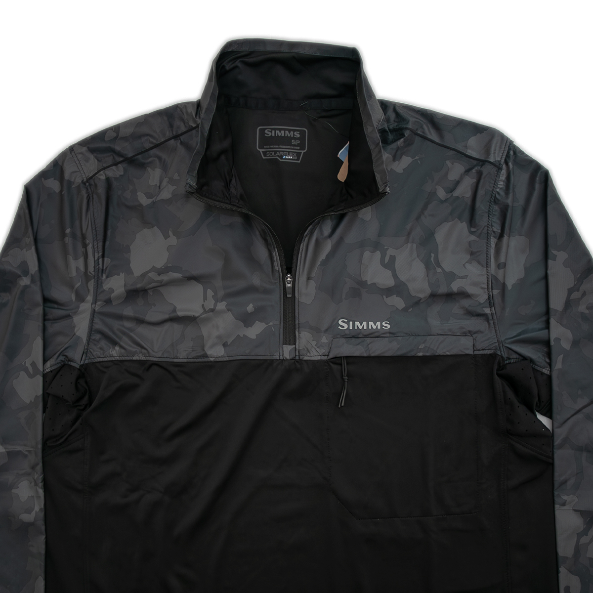 SIMMS 2024年モデル メンズ ソーラーフレックス ウィンド ハーフ ジップ シャツのカラーはブラック/レジメント カモ カーボンです。