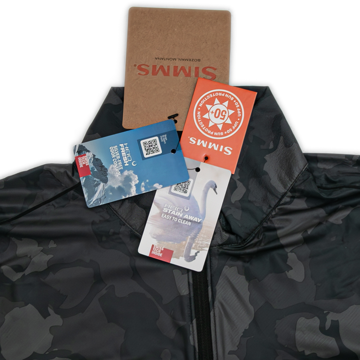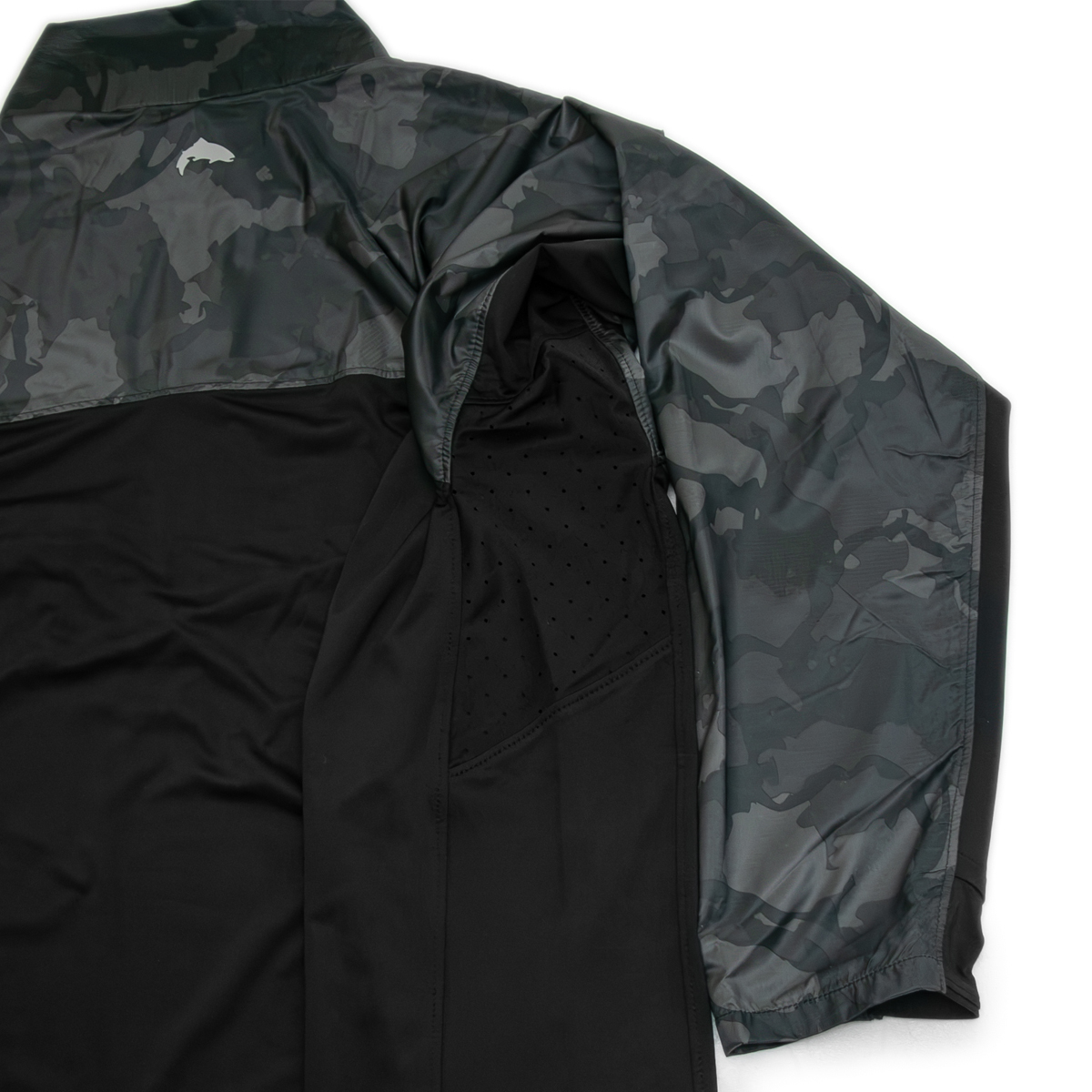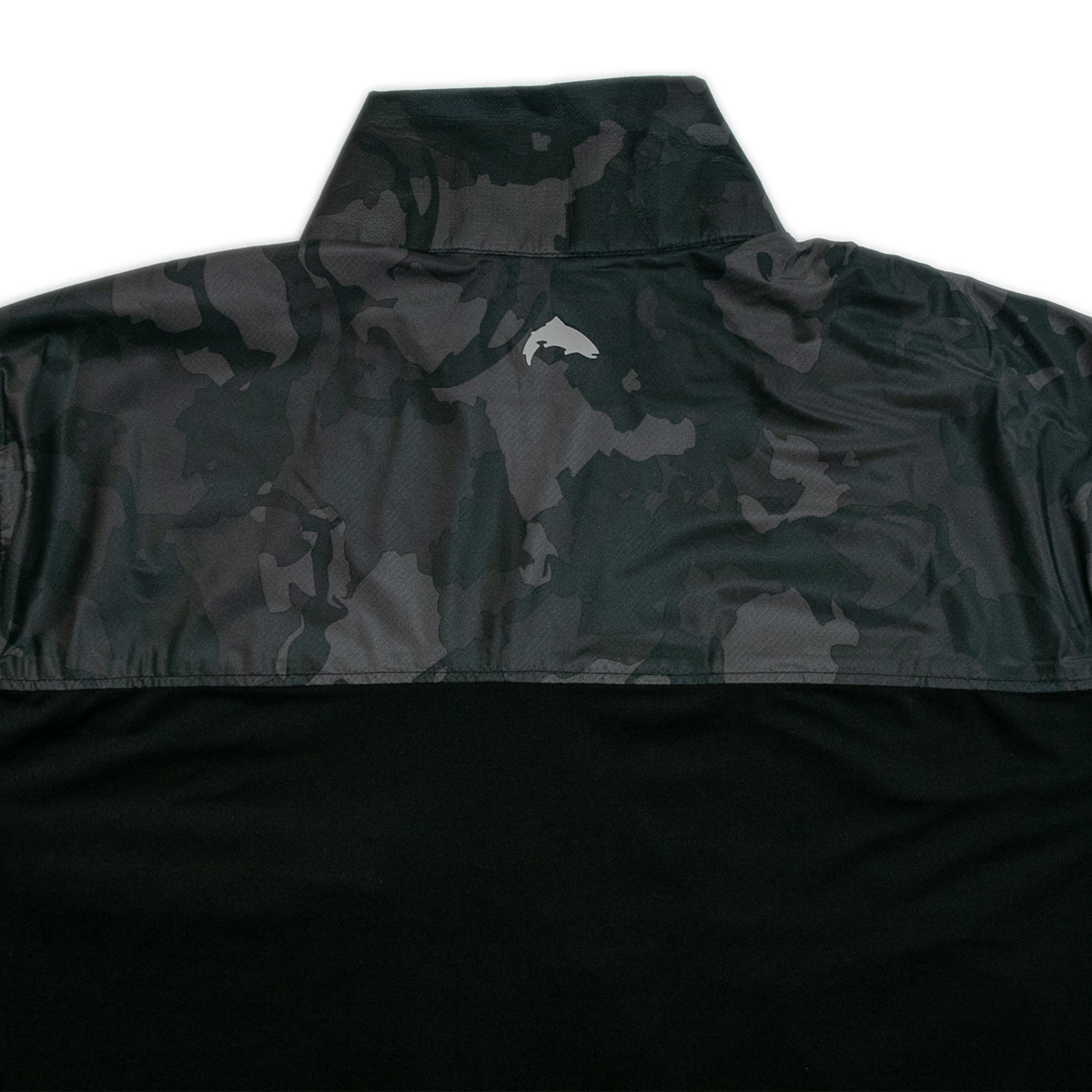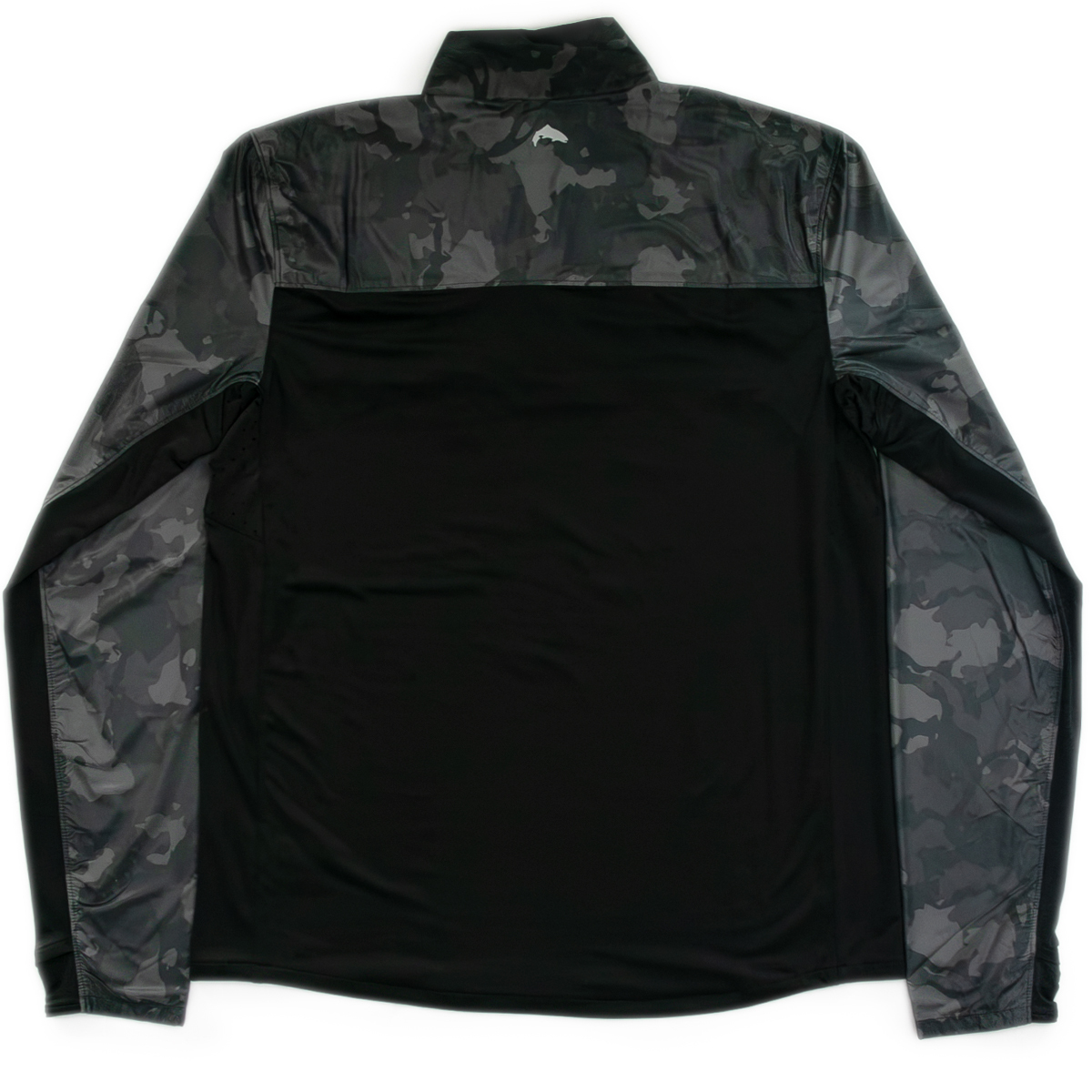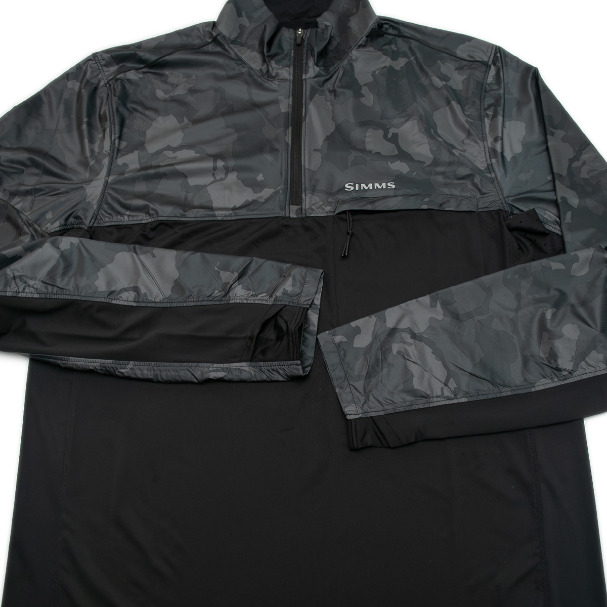 SIMMS 2024年モデル メンズ ソーラーフレックス ウィンド ハーフ ジップ シャツのカラーはブラック/レジメント カモ カーボンです。