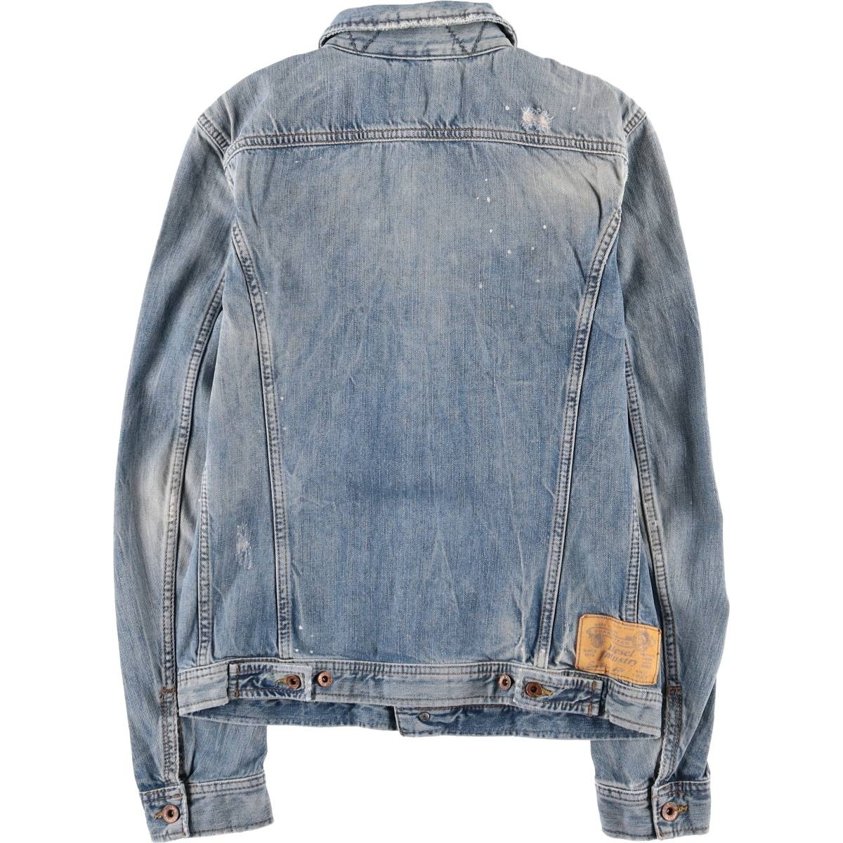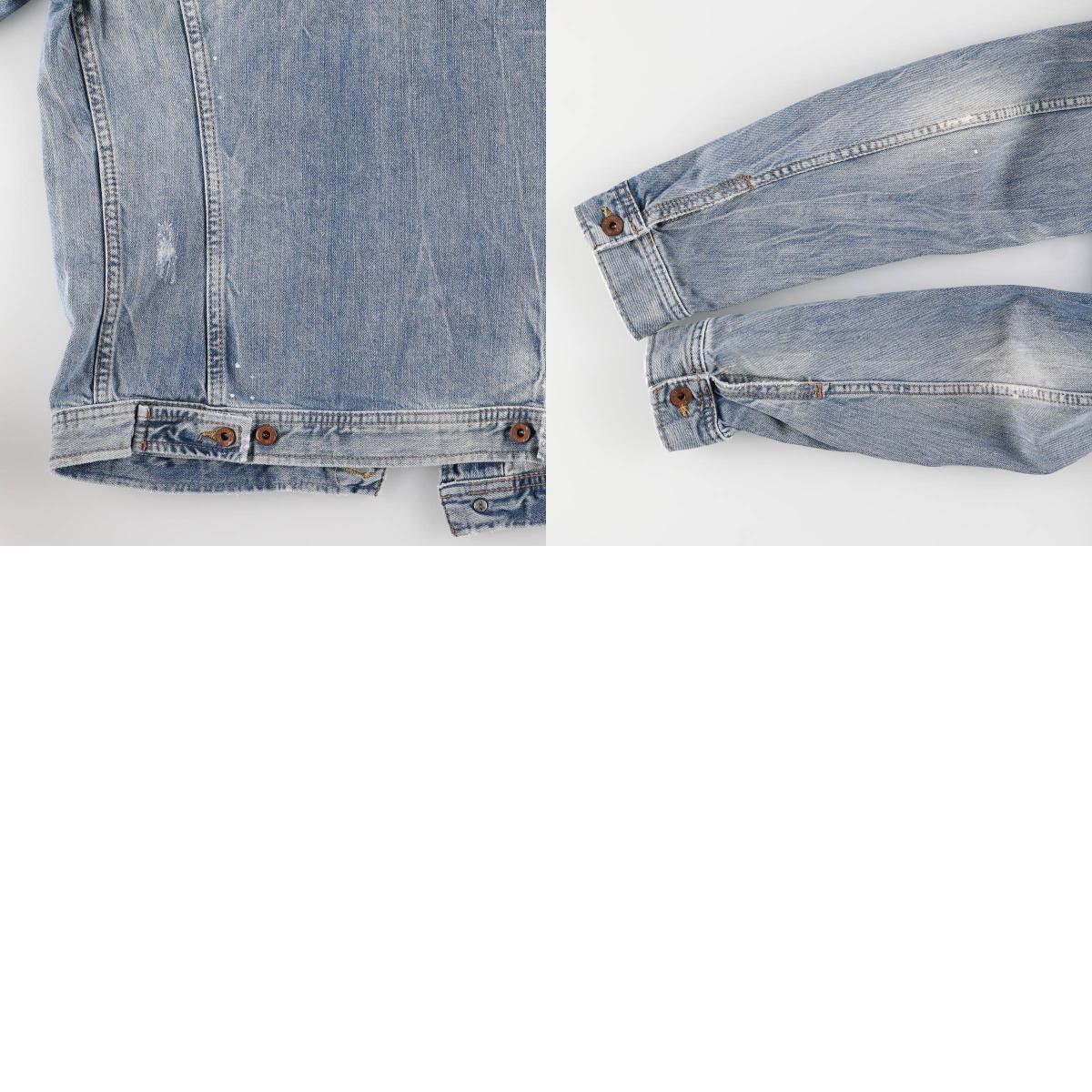 | 表記サイズ: M 着丈: 59.5cm 身幅: 48cm 肩幅: 41.5cm 袖丈: 65.5cm ![]() | ![]() ランク:C USEDデニムですので使用感、擦れ、色落ちなどございますが、まだまだご愛用していただけます。 古着という事をご理解の上ご注文よろしくお願いします。 【状態追記】 ●全体的に汚れ ●前、両袖・両襟・両胸部・両裾に擦れ フロントボタン内・右袖内に汚れ ●後、両袖・左肩・左襟・左腰・両裾に擦れ 右肩に裂け ●内側、襟ぐり・両裾に汚れ 襟ぐり・左腰・両裾に擦れ |