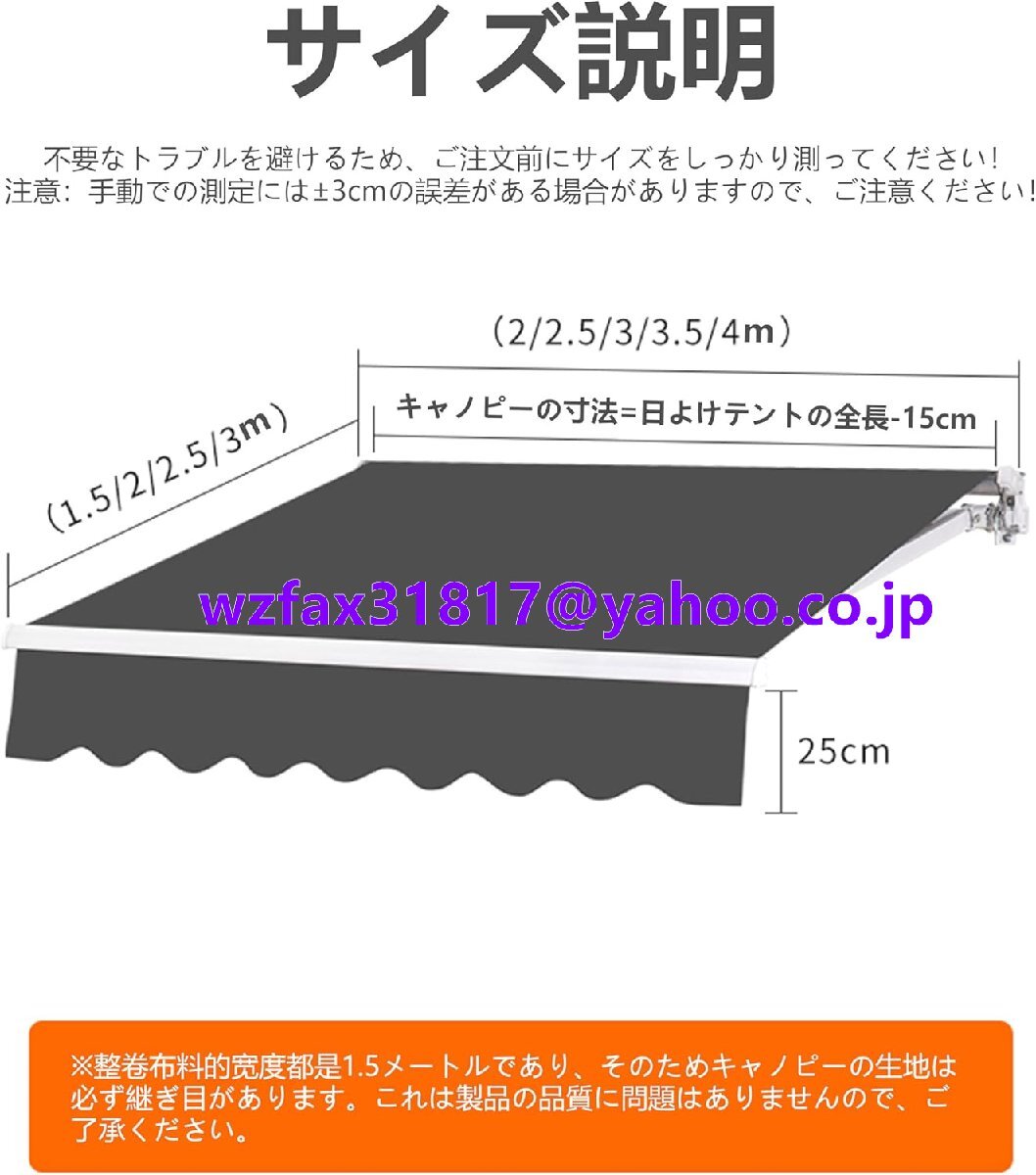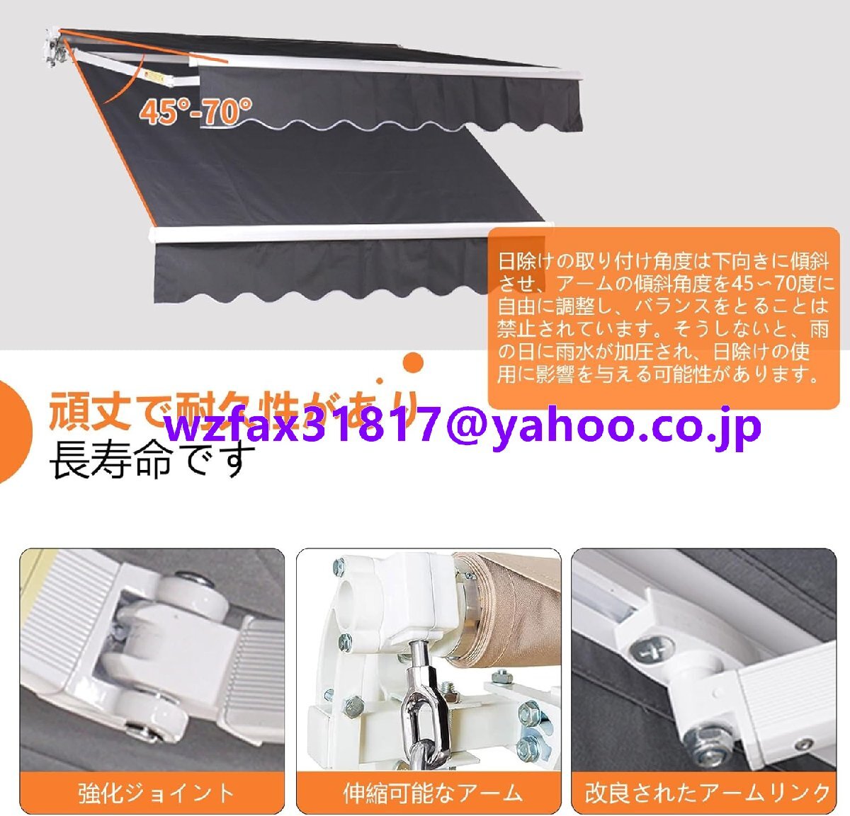 格納式オーニング 巻き取り式 サンシェード 日除け 雨よけ UVカット 屋根オーニングテント 家庭用/商業用 簡単設置 (グレー, 幅4*3m)