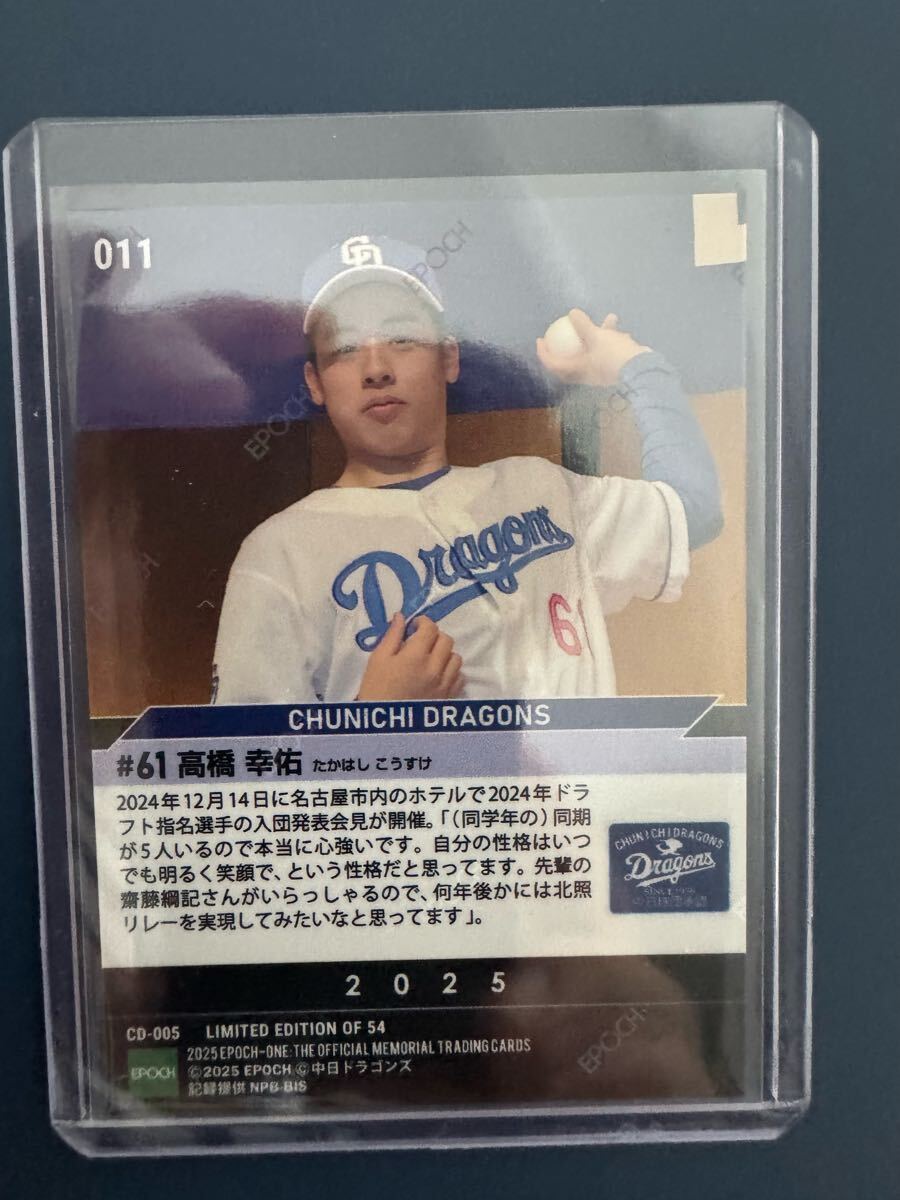 画像を添付しておりますのでご確認ください。新入団会見の写真が使用されており正真正銘のルーキーカードです。
