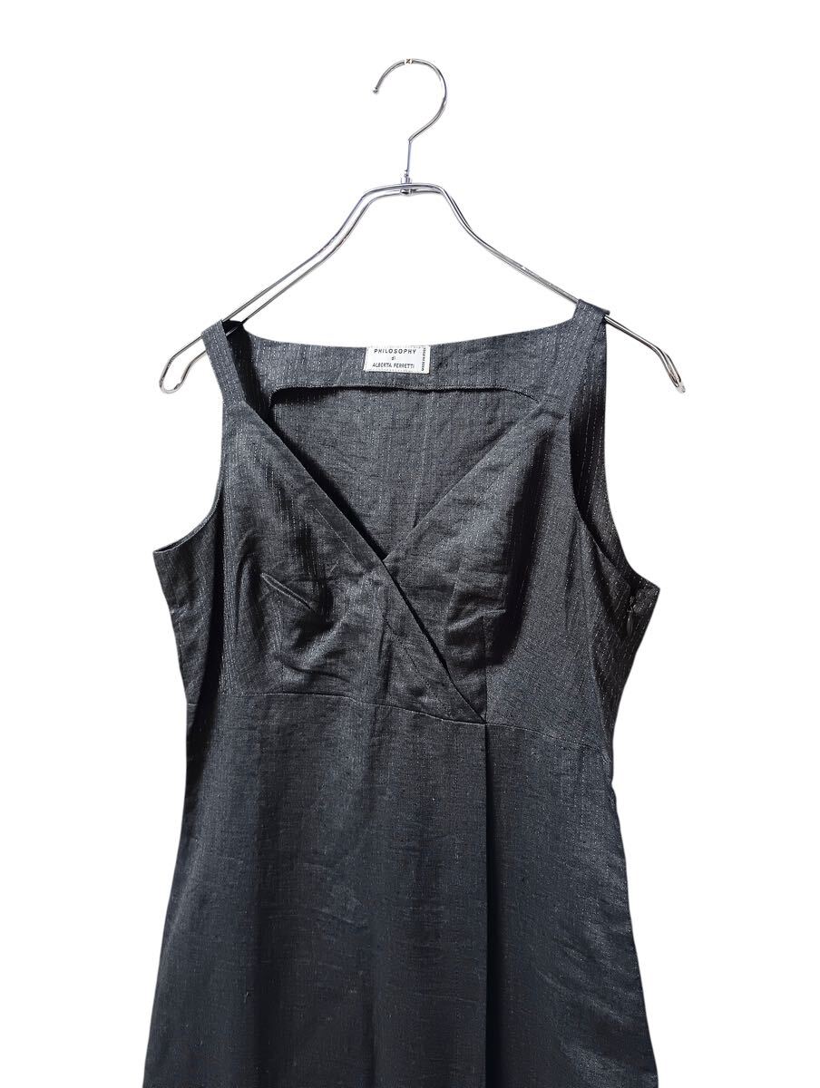 (D) PHILOSOPHY di ALBERTA FERRETTI アルベルタフェレッティ イタリア製 リネン ワンピース 42 グレー