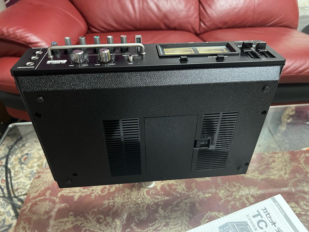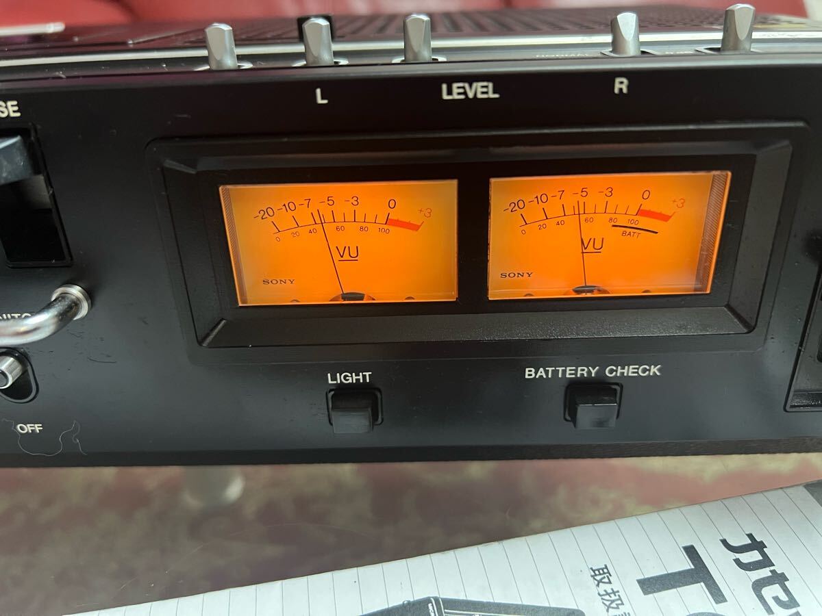 付属品電源ケーブルと説明書になります。戸外で生録ができ、家庭でオーディオにつなげばデッキになり、一世を風靡しました。☆ドルビー搭載。☆再生、早送り、巻き戻し機能。☆ライン/マイク切換スイッチを搭載。マイクはL、R独立ジャックで調整が可能。RECレベルは左右独立レベルボリューム。大入力にも安心なソニーリミッター録音方式採用。年代物になりますので傷や、汚れ、ホコリ付きなどありますので画像にてご確認をお願い致します。