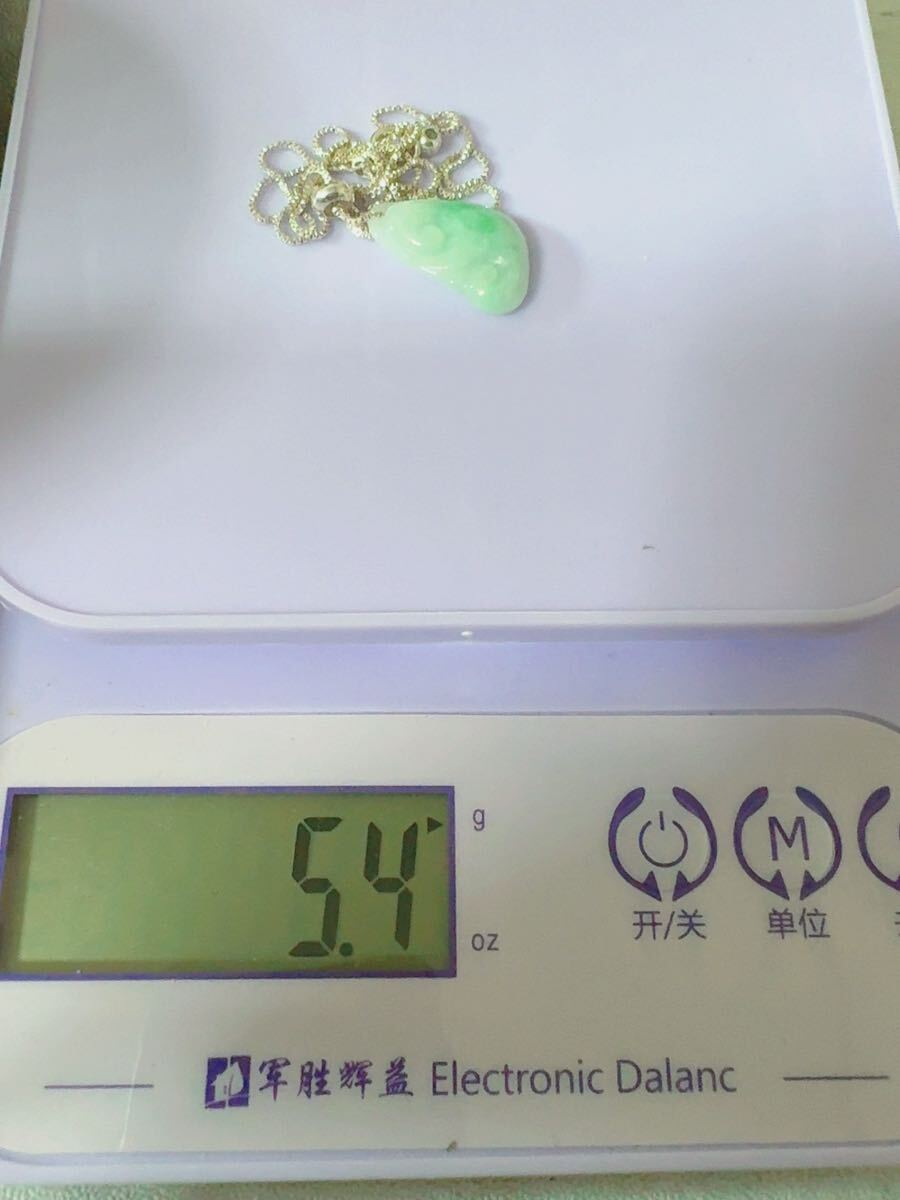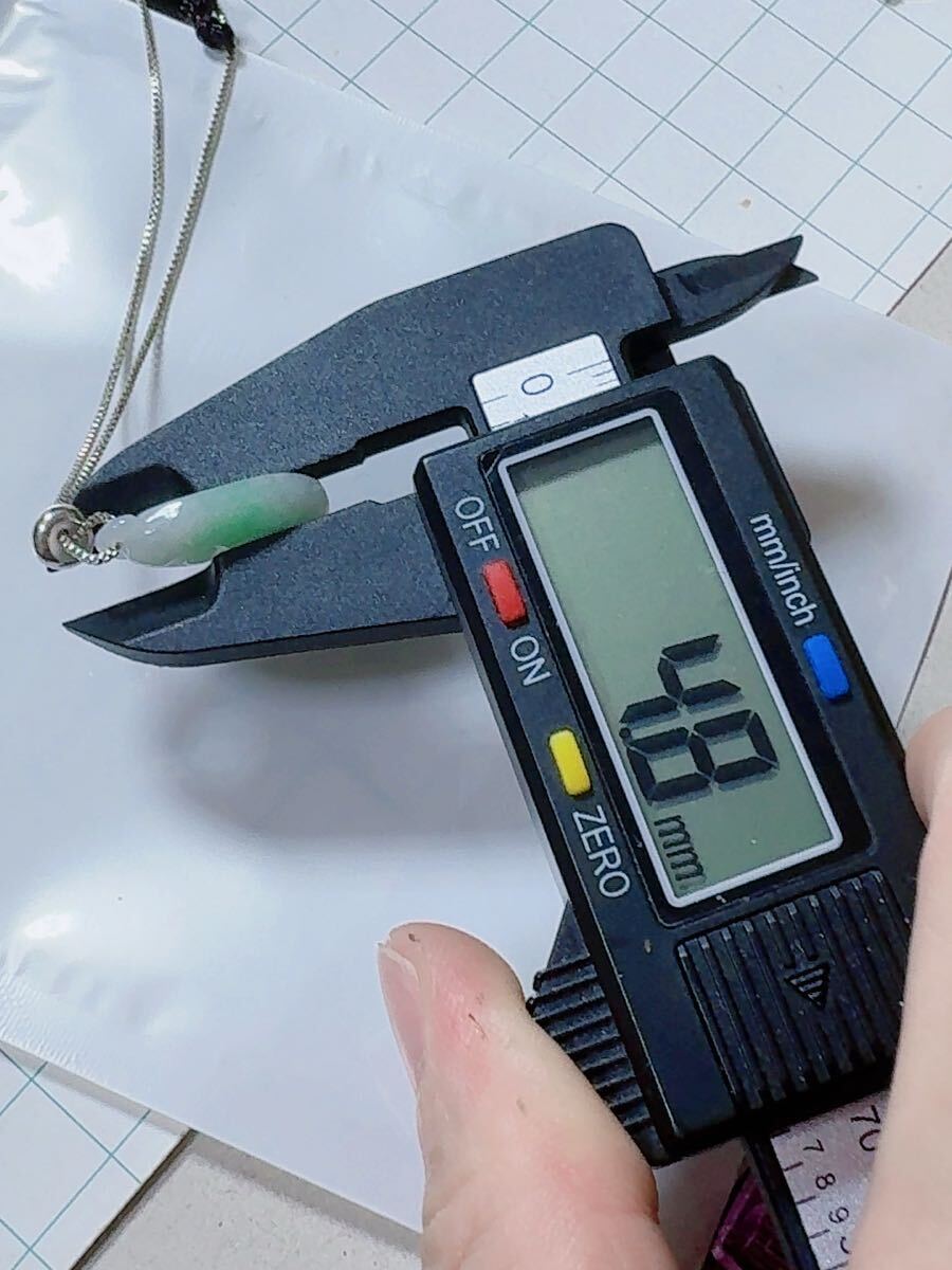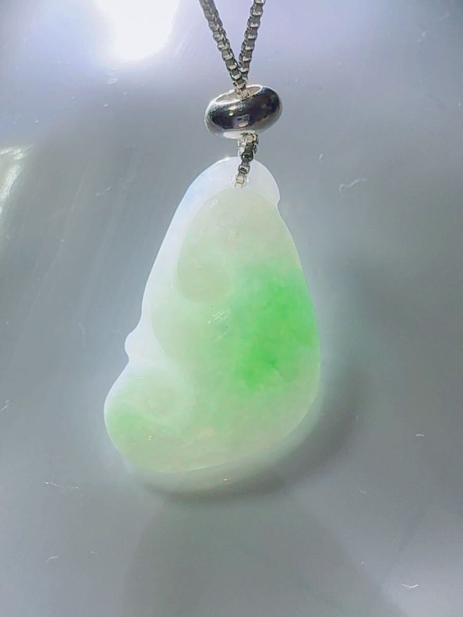 R2-01583天然石 《本物保証》陽春白雪一点緑翡翠 「如意」ペンダント ネックレスSV999約45cm(調整可能) パワーストーン 縁起物