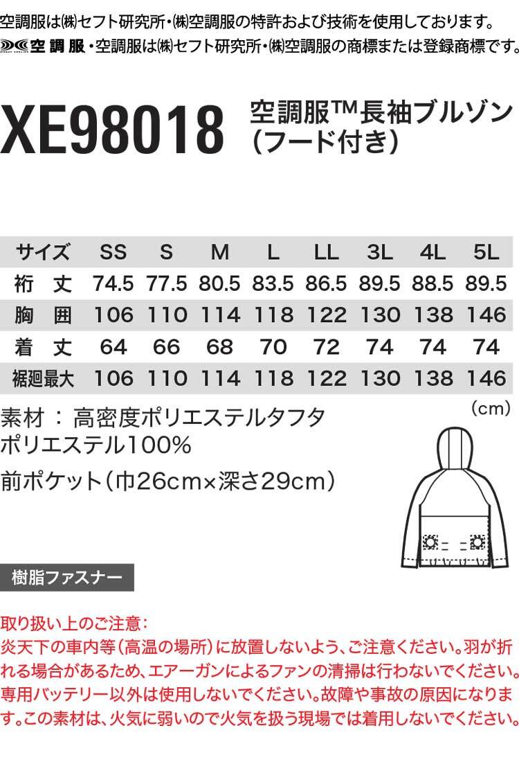 [在庫処分] 空調服 ジーベック アノラックパーカー 長袖ブルゾン(服のみ) XE98018A Mサイズ 90クロ